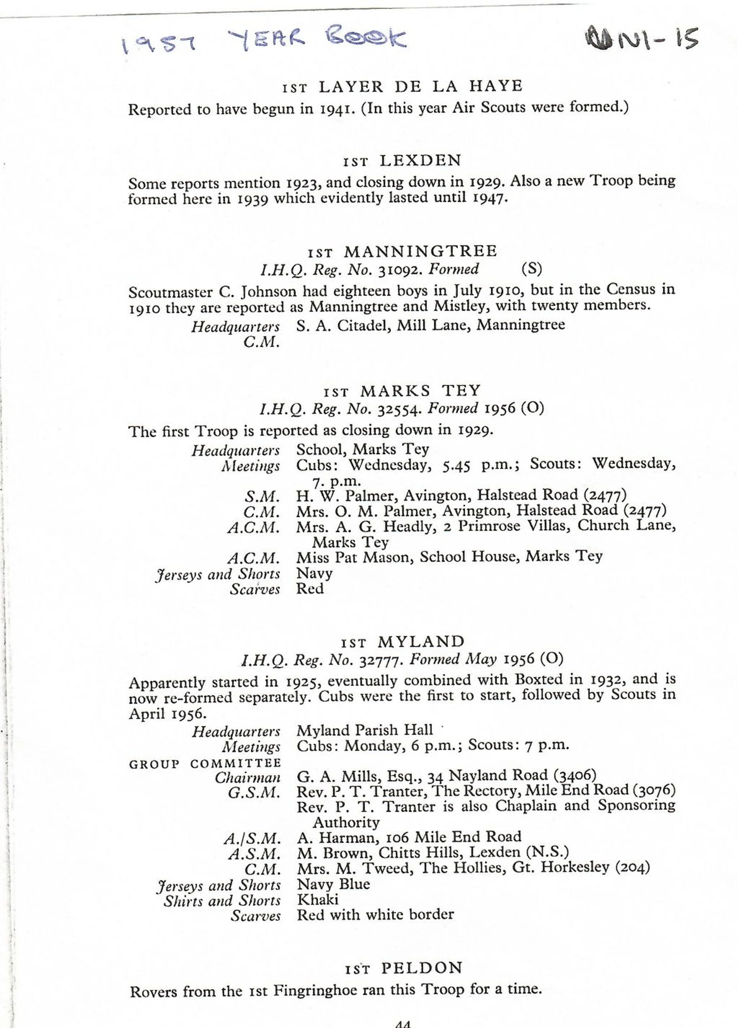 1957 Yearbook entry for Marks Tey Scouts and Cubs