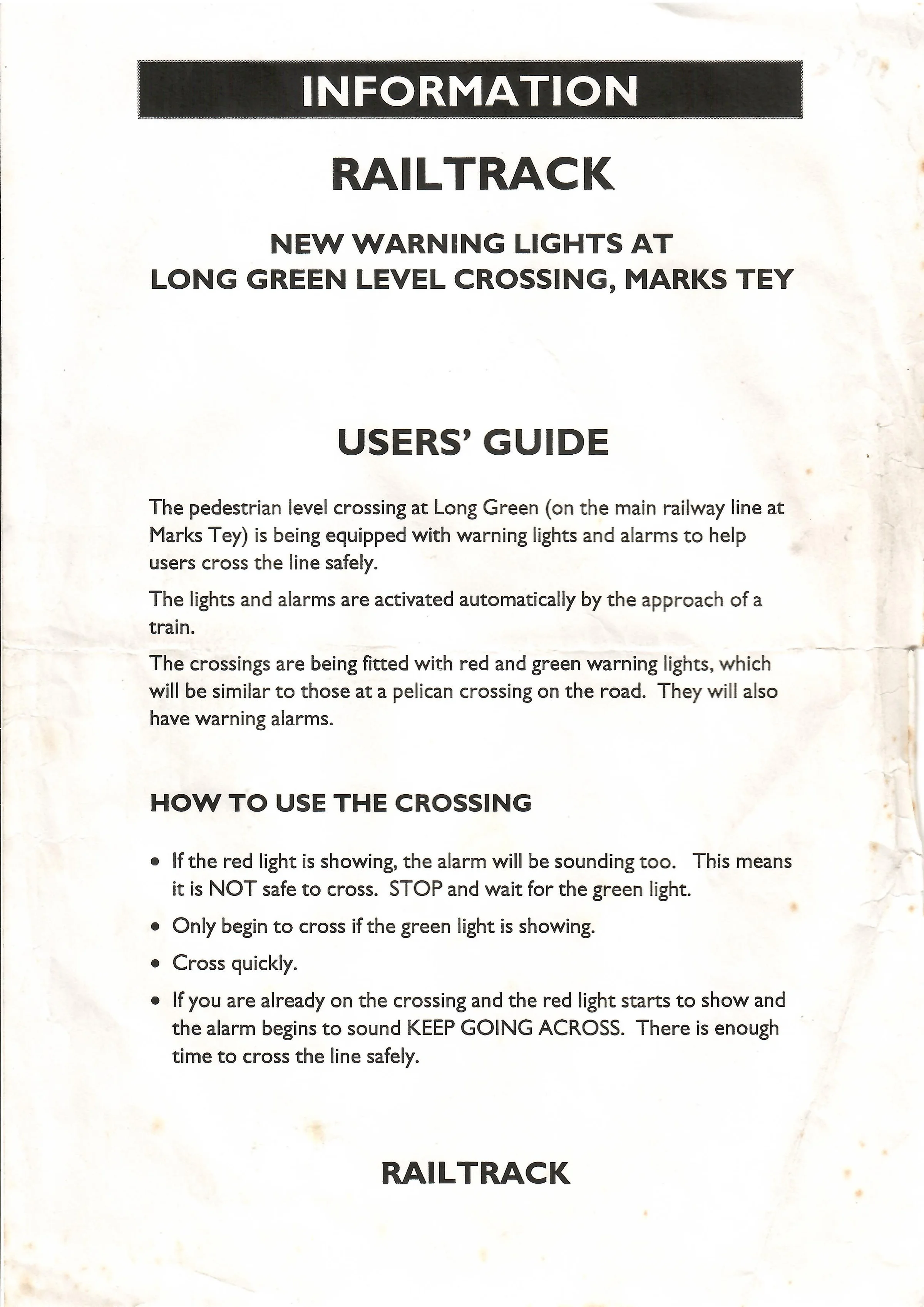 Letter from Railtrack to householders regarding the new lights at the Long Green pedestrian level crossing.