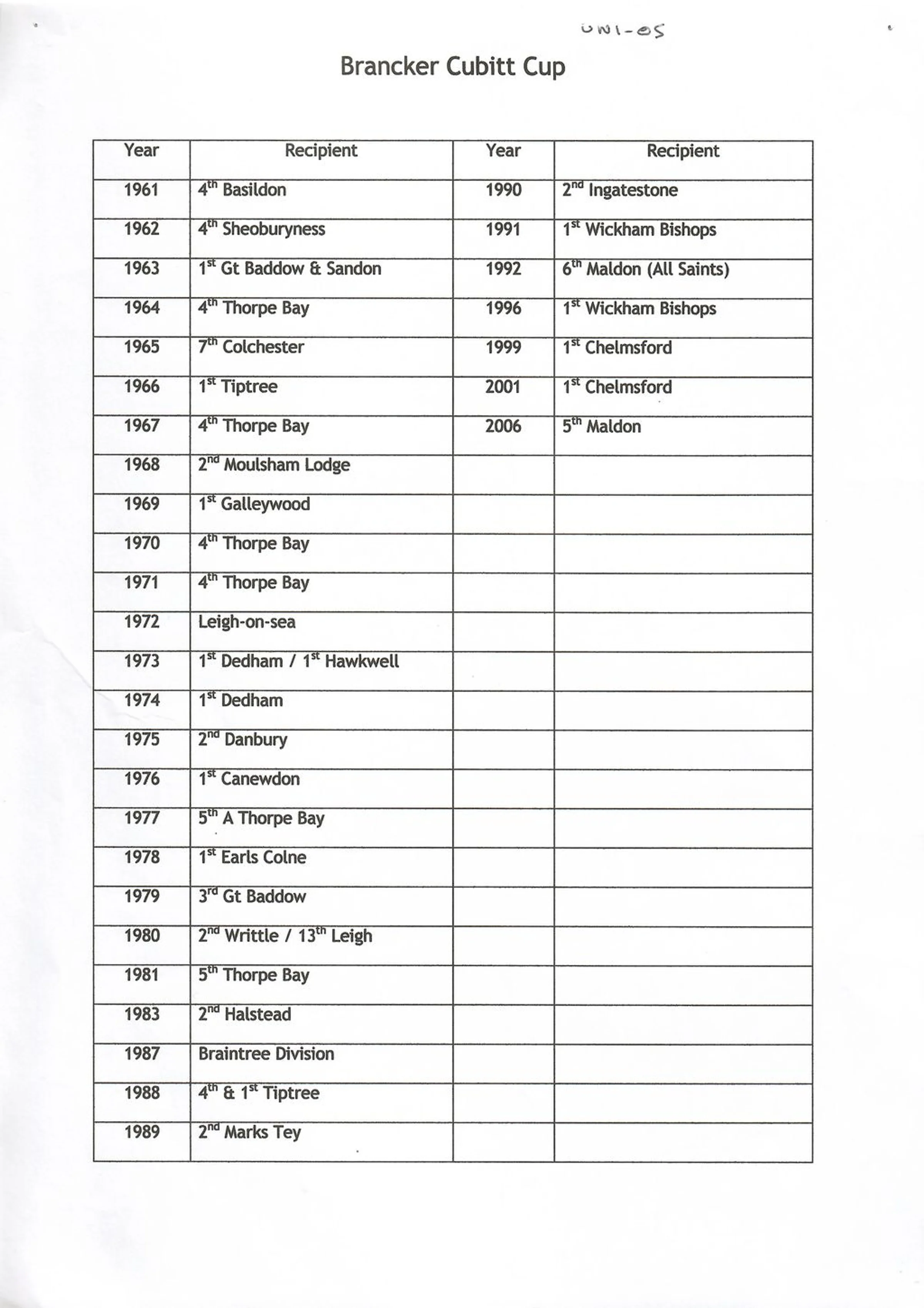 In 1989 the 2nd Marks Tey Guide Company were awarded the Branker-Cubitt Cup.