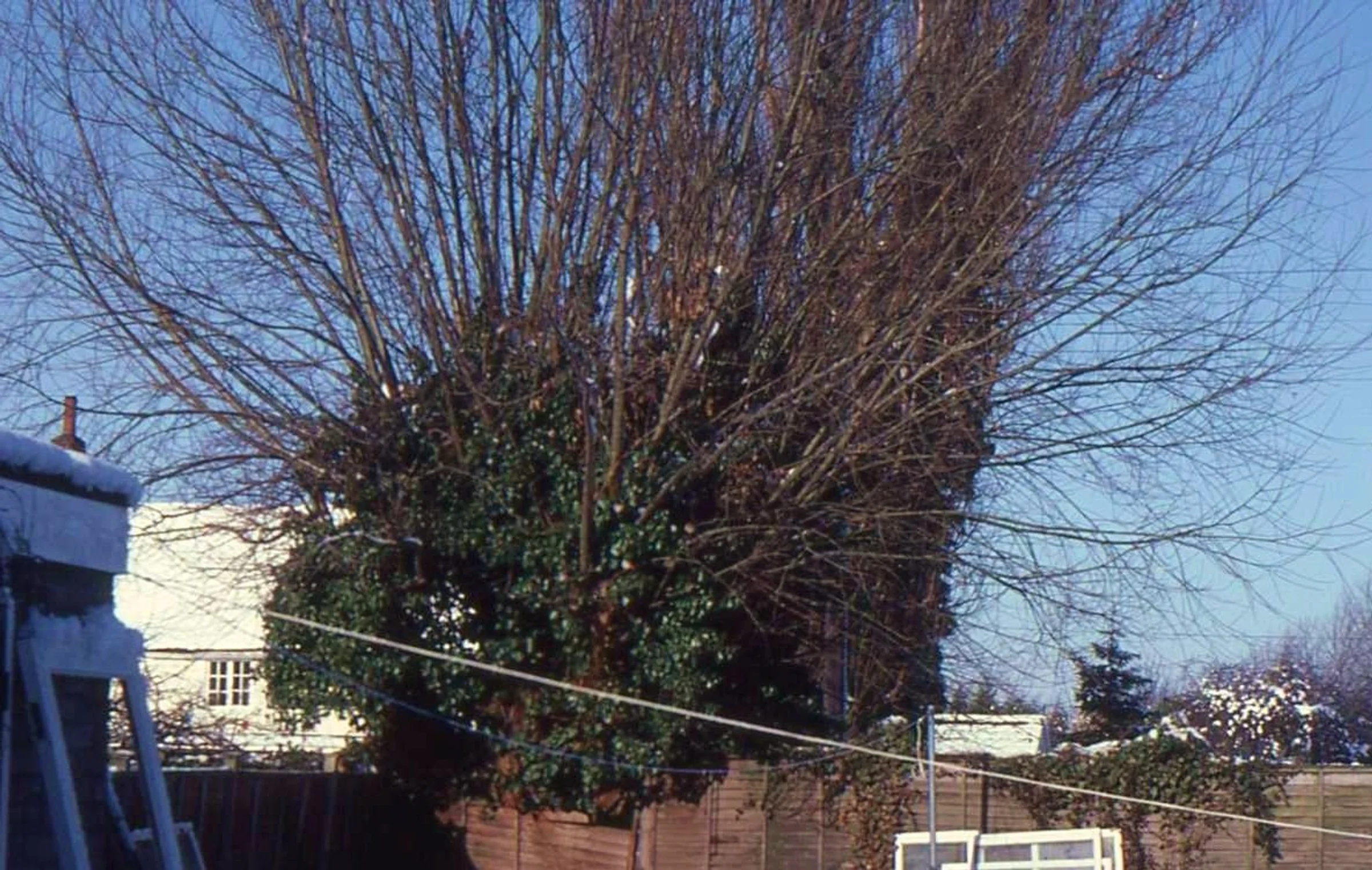 It was a White Christmas in 1981 when this photo was taken. As well as showing part of The Red Lion it has the willow tree by Coggeshall Road (maybe 200 years old). On the pub side of the road the tall poplar can just be seen. It fell a few years later.