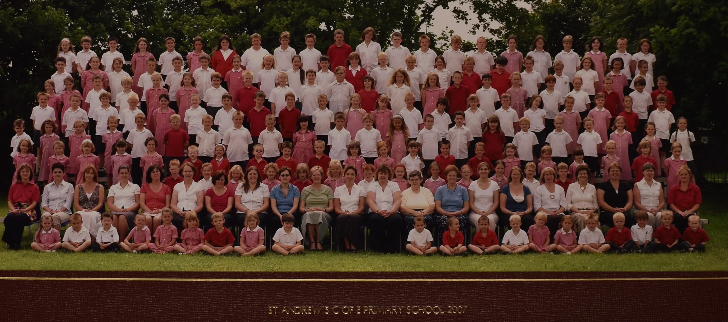 A photo of all pupils and staff at Marks Tey Primary School in 2007.