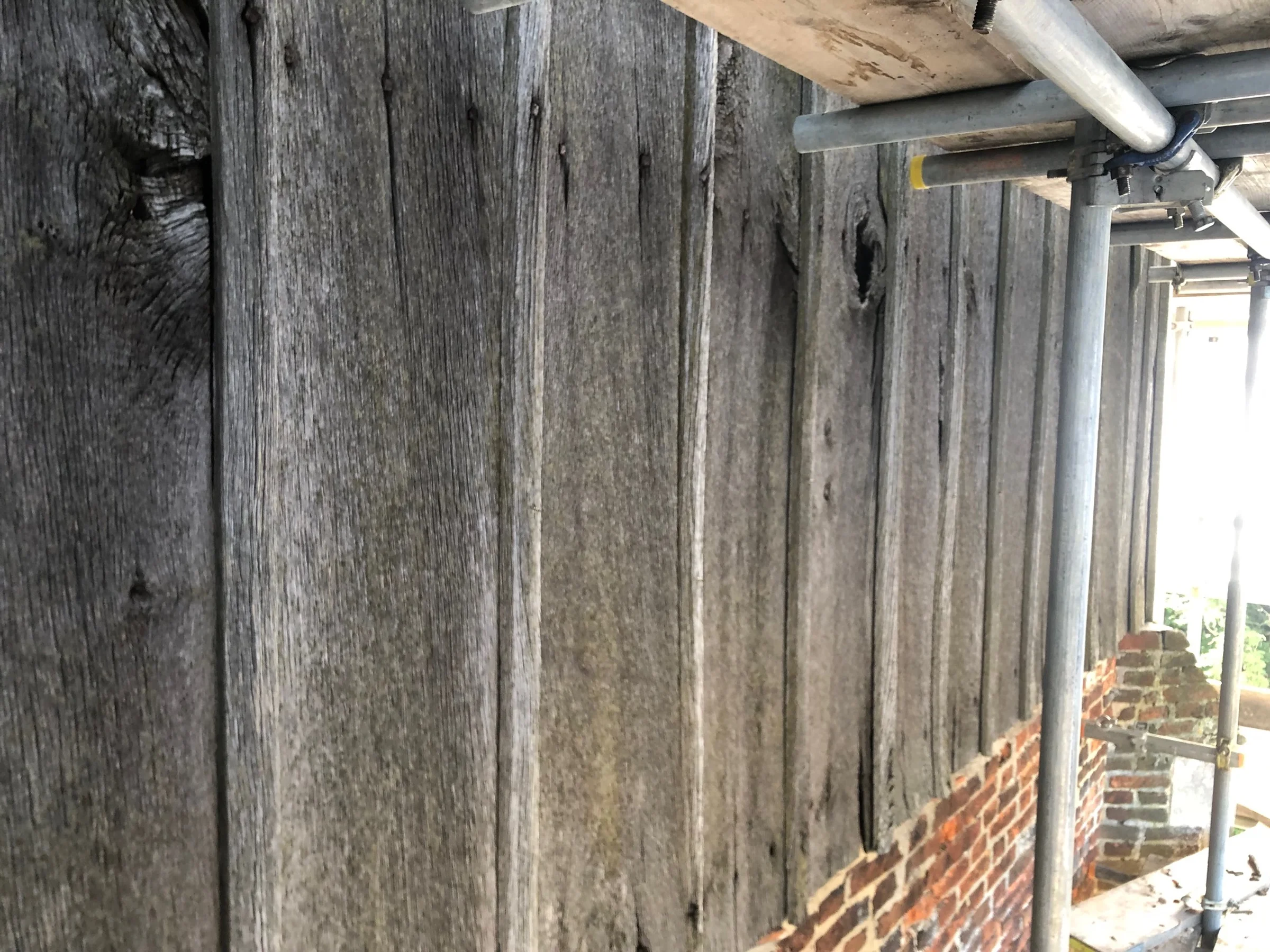 St Andrews Church Spire restoration, boards west elevation lower stage 1