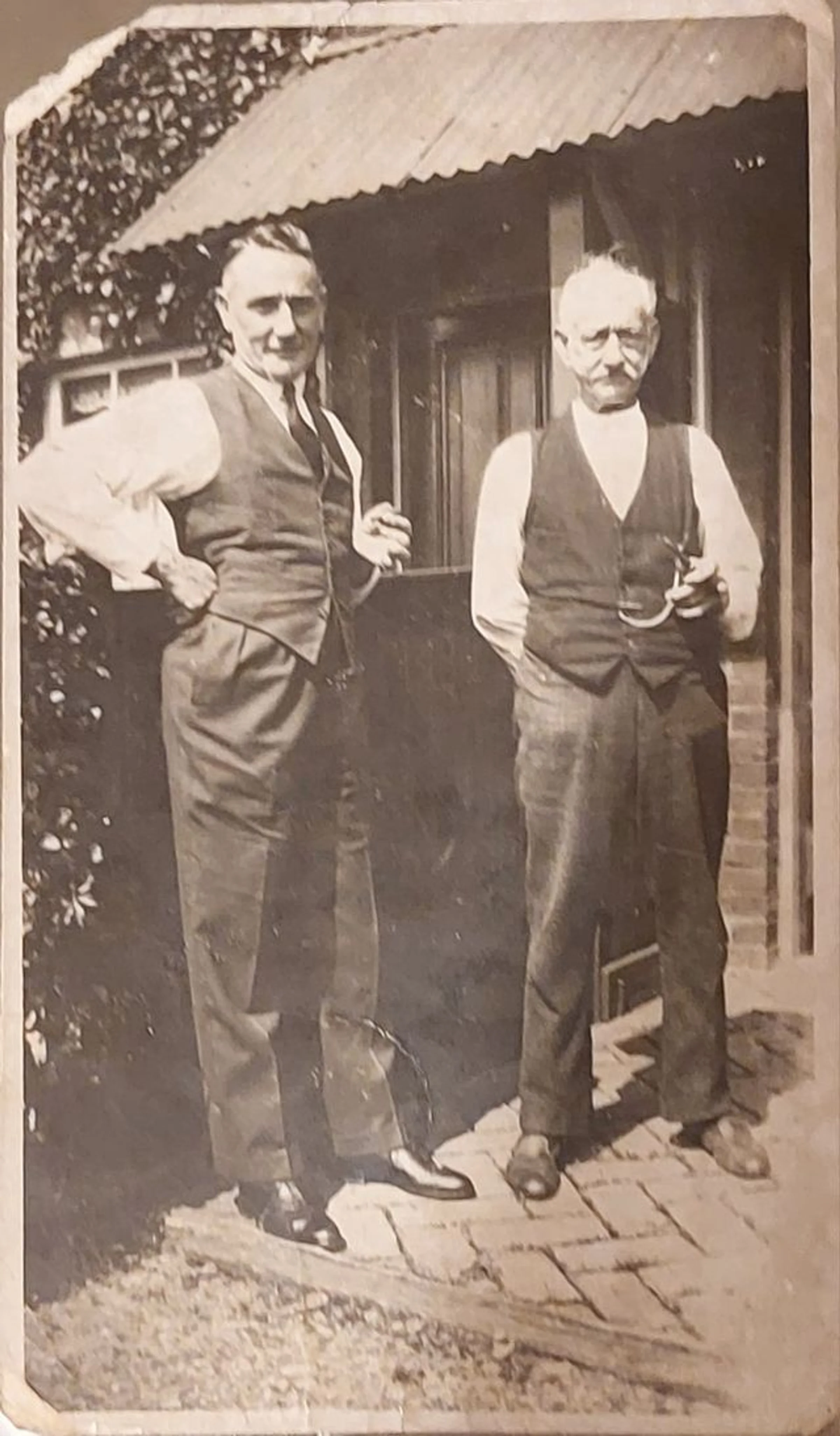 The second photo is of Robert (Bob) whom I would now say is in his early forties, and so I would date this photograph around 1930-1933. The elderly gentleman to his left is, I assume, his father Edmund, who would now be well into his seventies. There is a very feint note on the back of the photo in pencil but it is indecipherable.