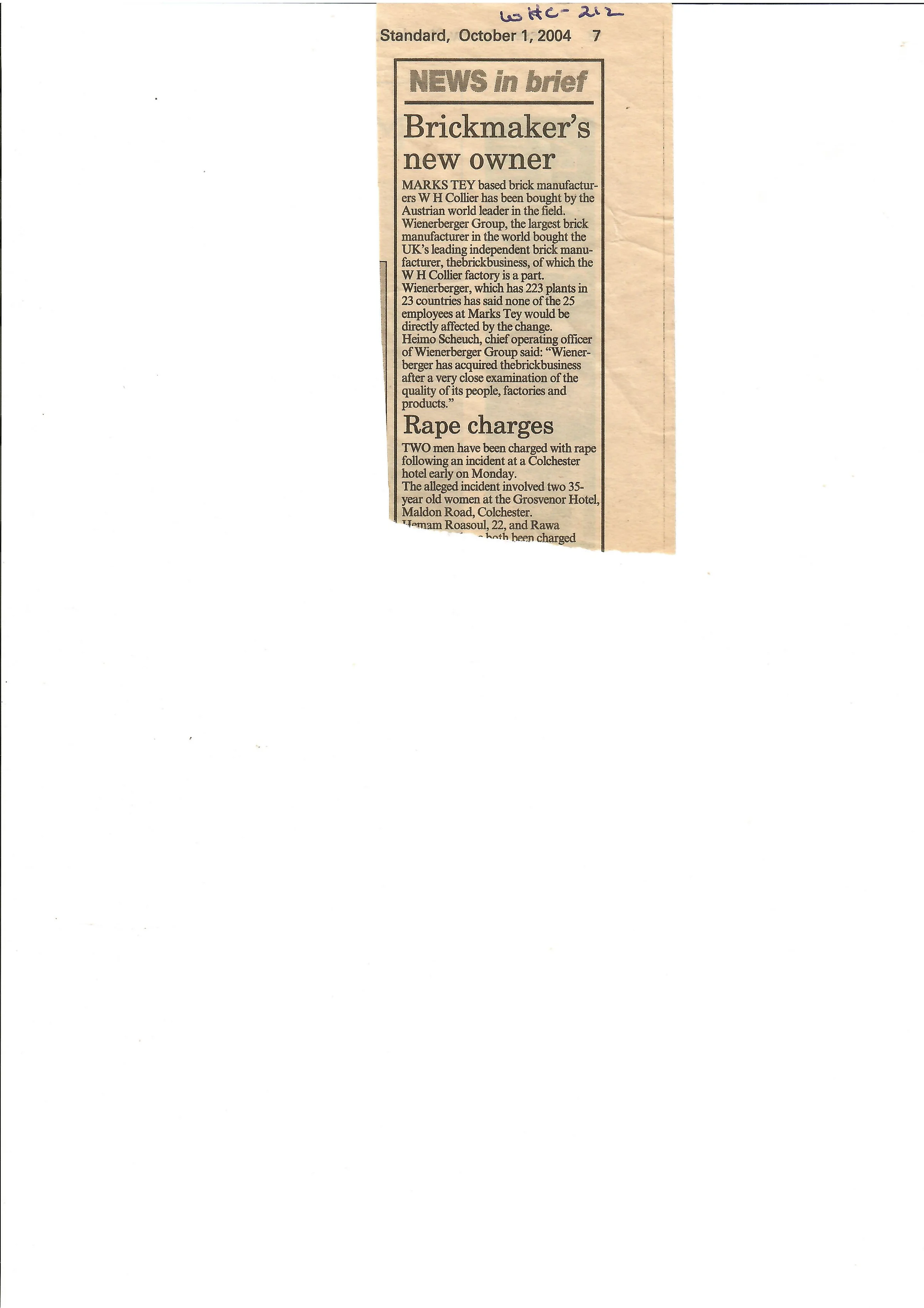 Newspaper cutting reporting W H Collier's purchase by the Weinberger Group.