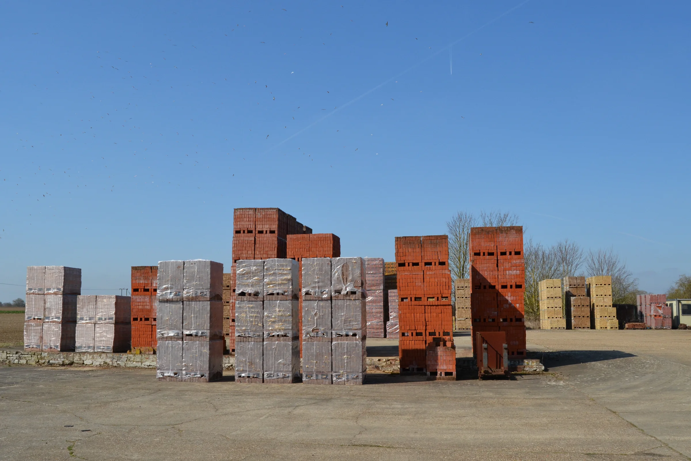 Bricks in the brickyard at W H Collier Brickworks, photograph taken by Kate Goodall during a tour for the Marks Tey Heritage Project.