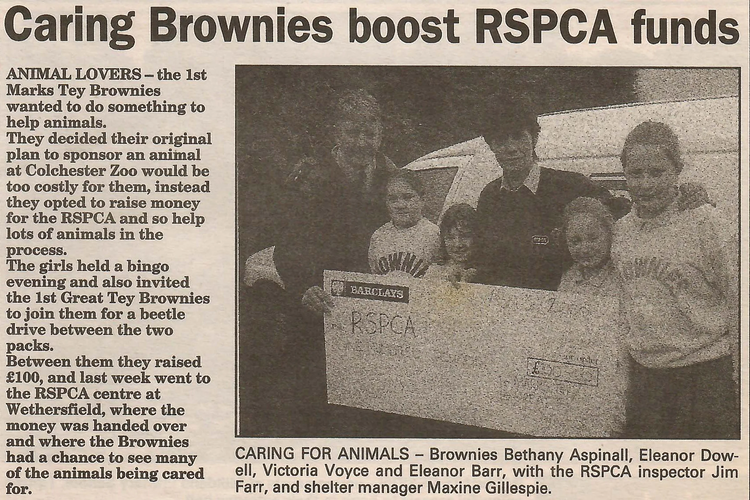 Newspaper photograph and report regarding fundraising by the Brownies.