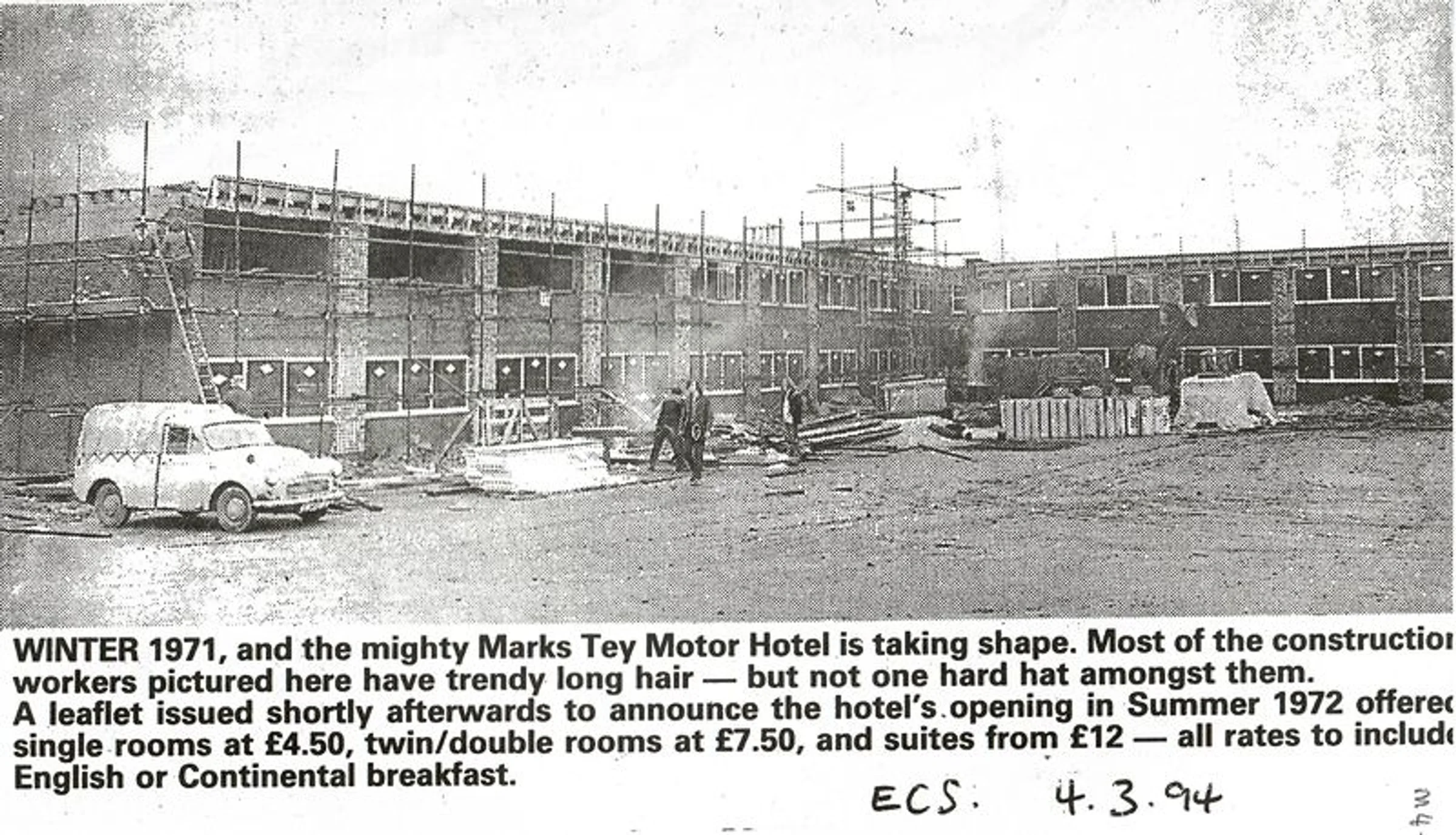 A 'looking back' article in the Essex County Standard from 1994 to Winter 1971 when the Marks Tey Hotel was under construction.