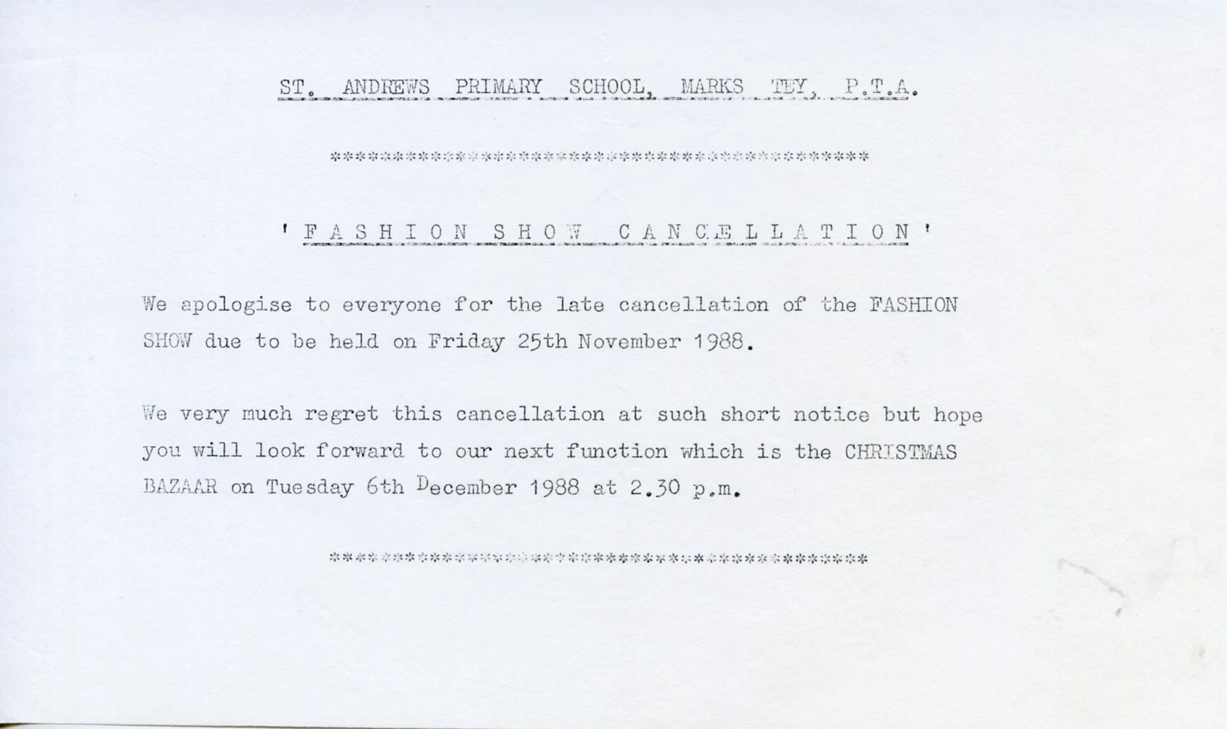 Cancellation of fashion show
