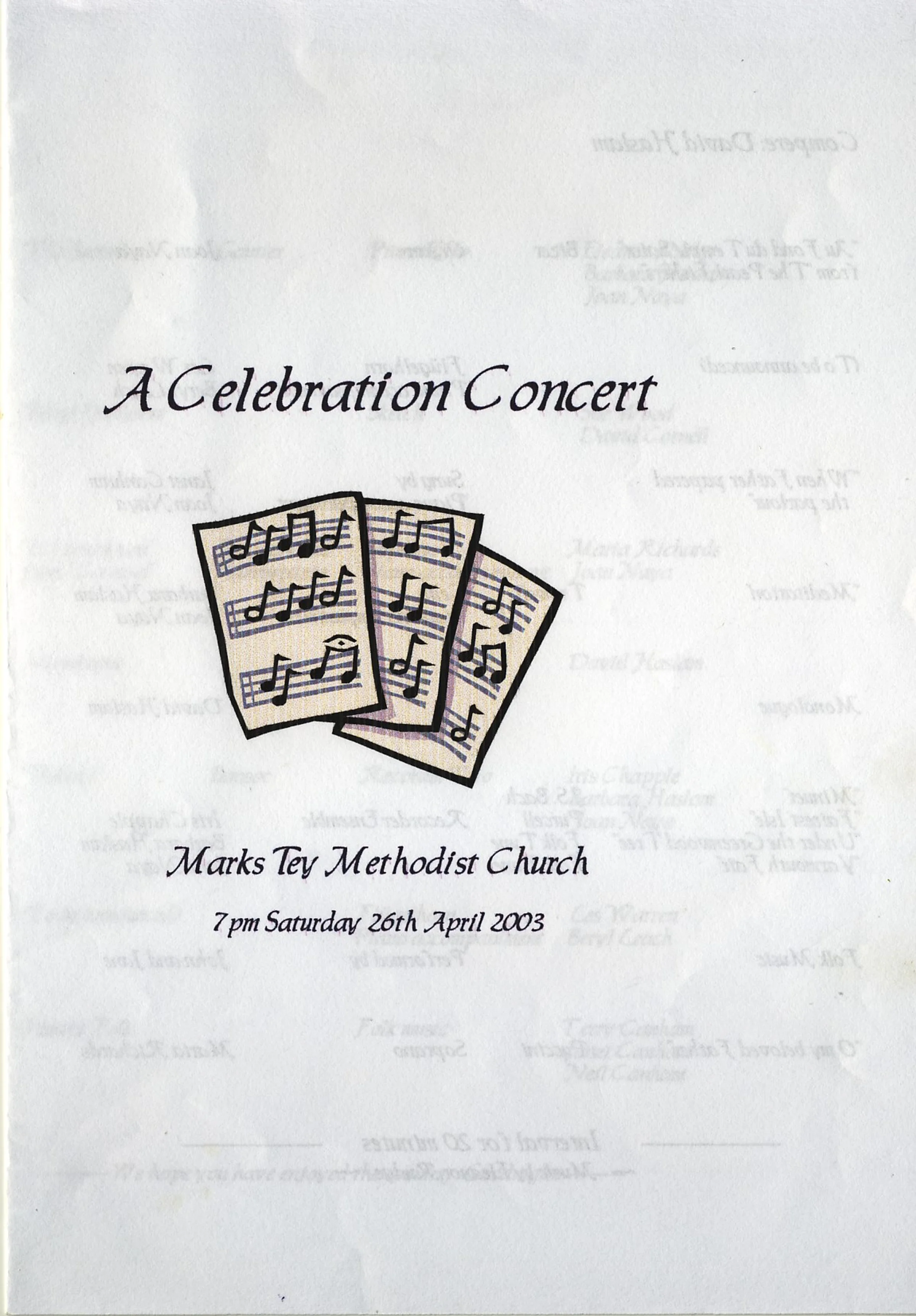 A list of all the items performed in the Celebration Concert on 26 April 2003 and by whom.