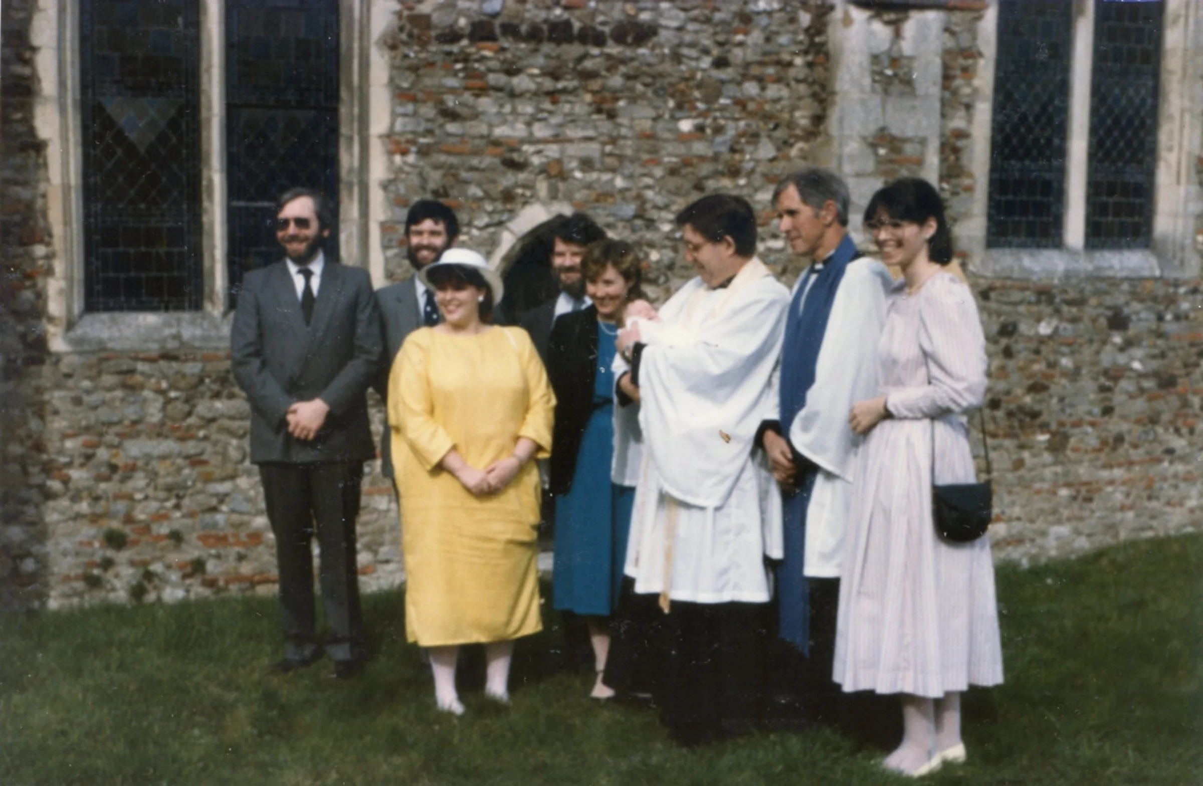 Rev John Marvell helped during the inter-regnum after Rev Peter Adams left. This photo was taken after the christening of Laura Dyson on 29 March 1986 and shows Rev John Marvell, Lay Reader Noel King and the godparents.