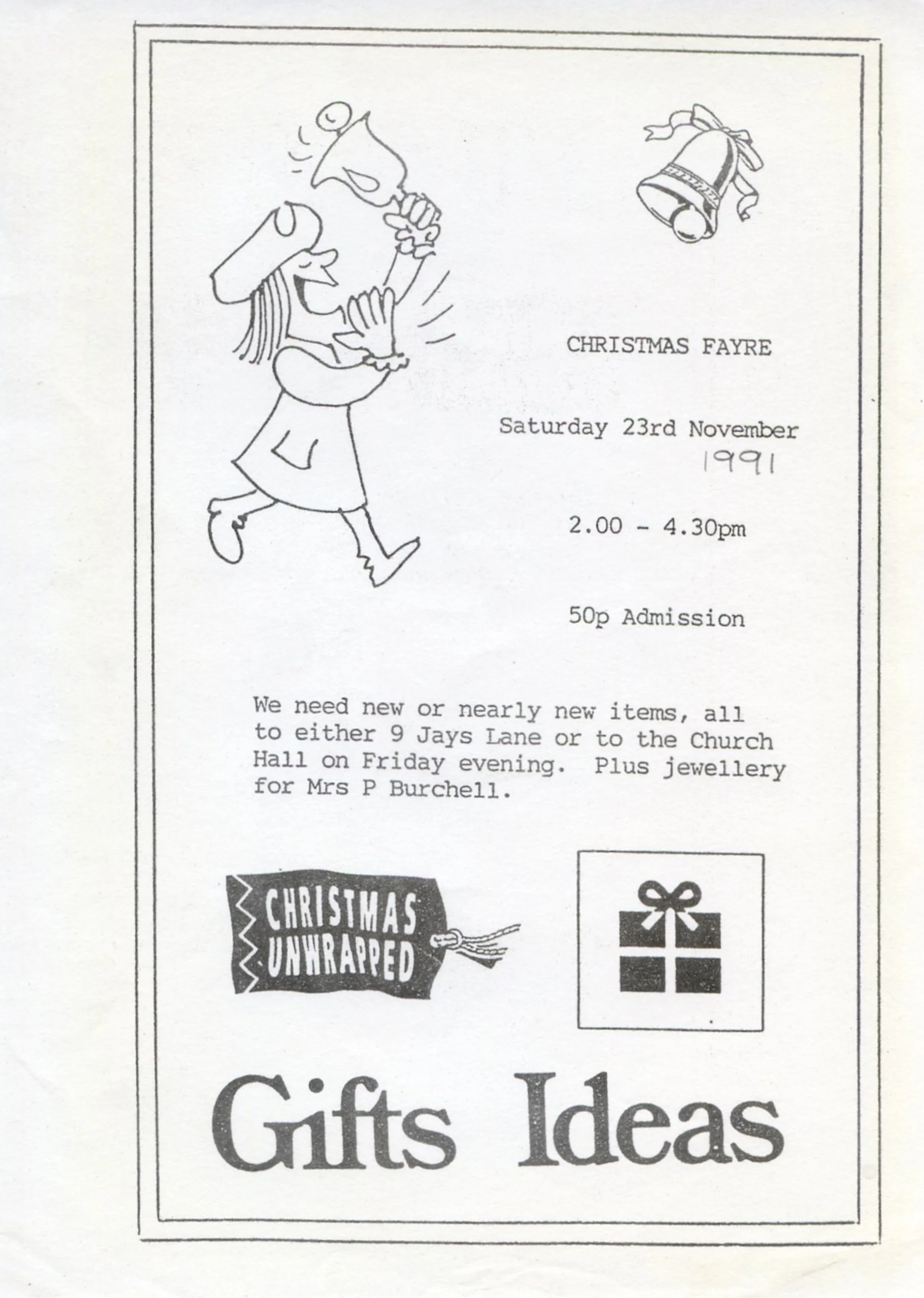 This poster was distributed with the November 1991 parish magazine. The fayre was on Saturday 23 November 1991.