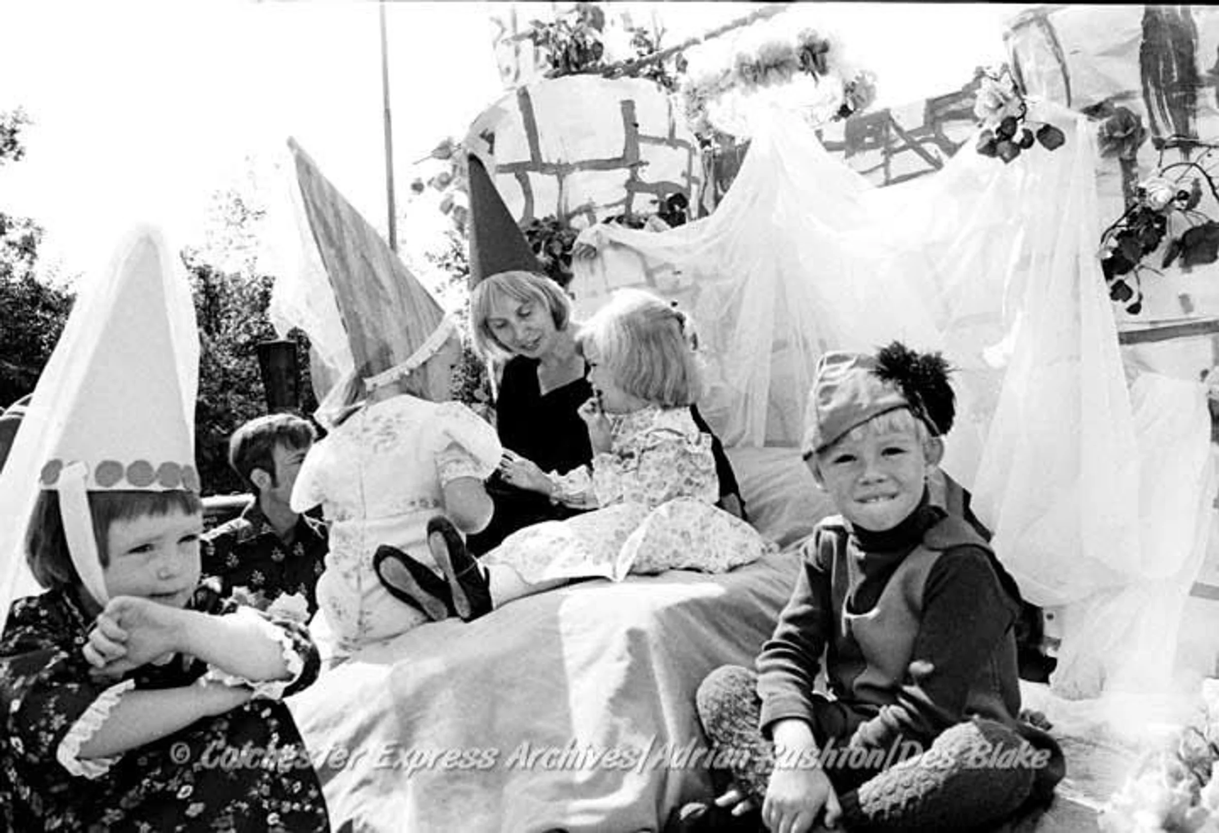 The Church playgroup in fancy dress at the Marks Tey Carnival, 1975. Taken by Des Blake and posted on Colchester Life.