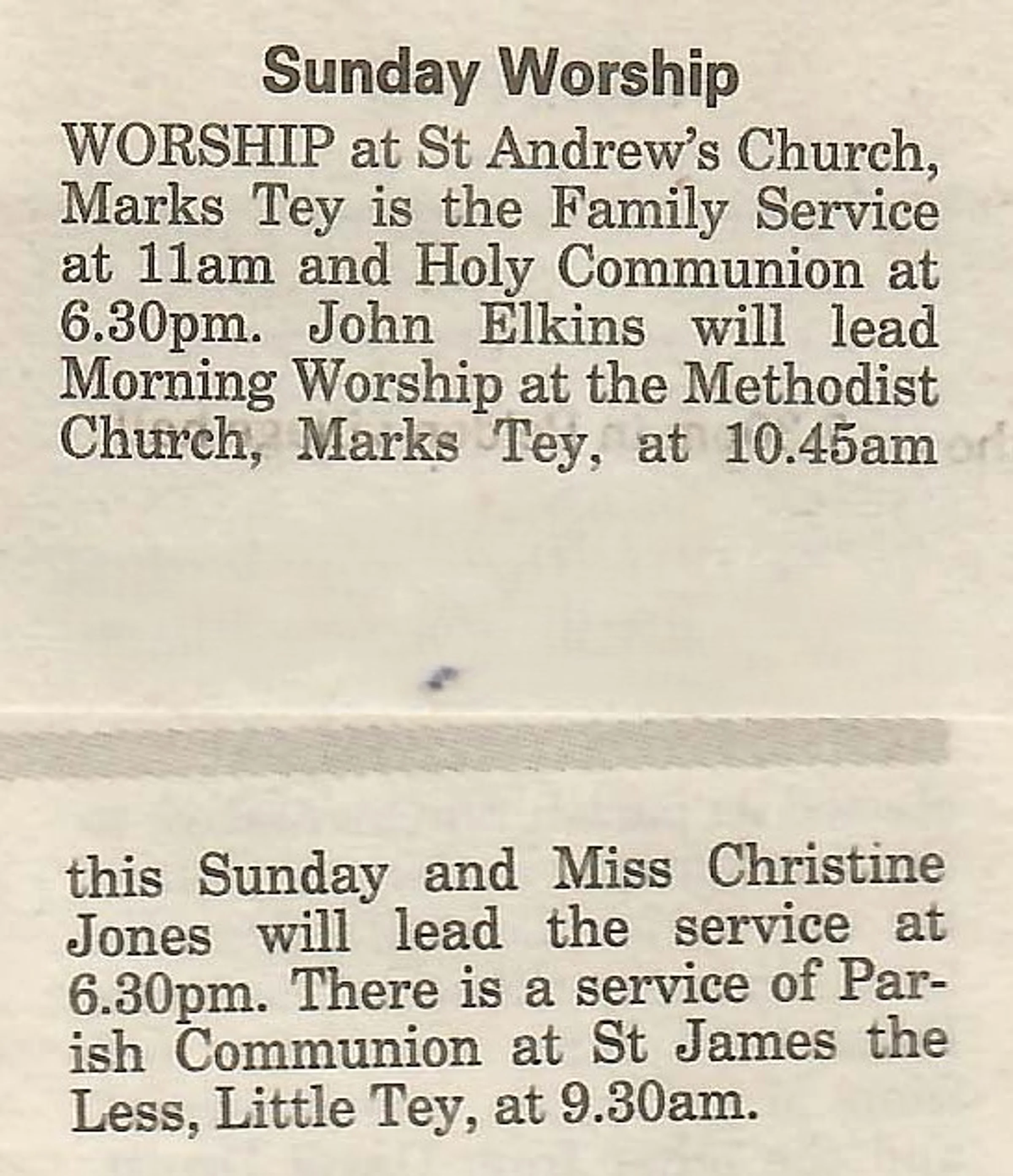 Village newspaper column reporting on church services.