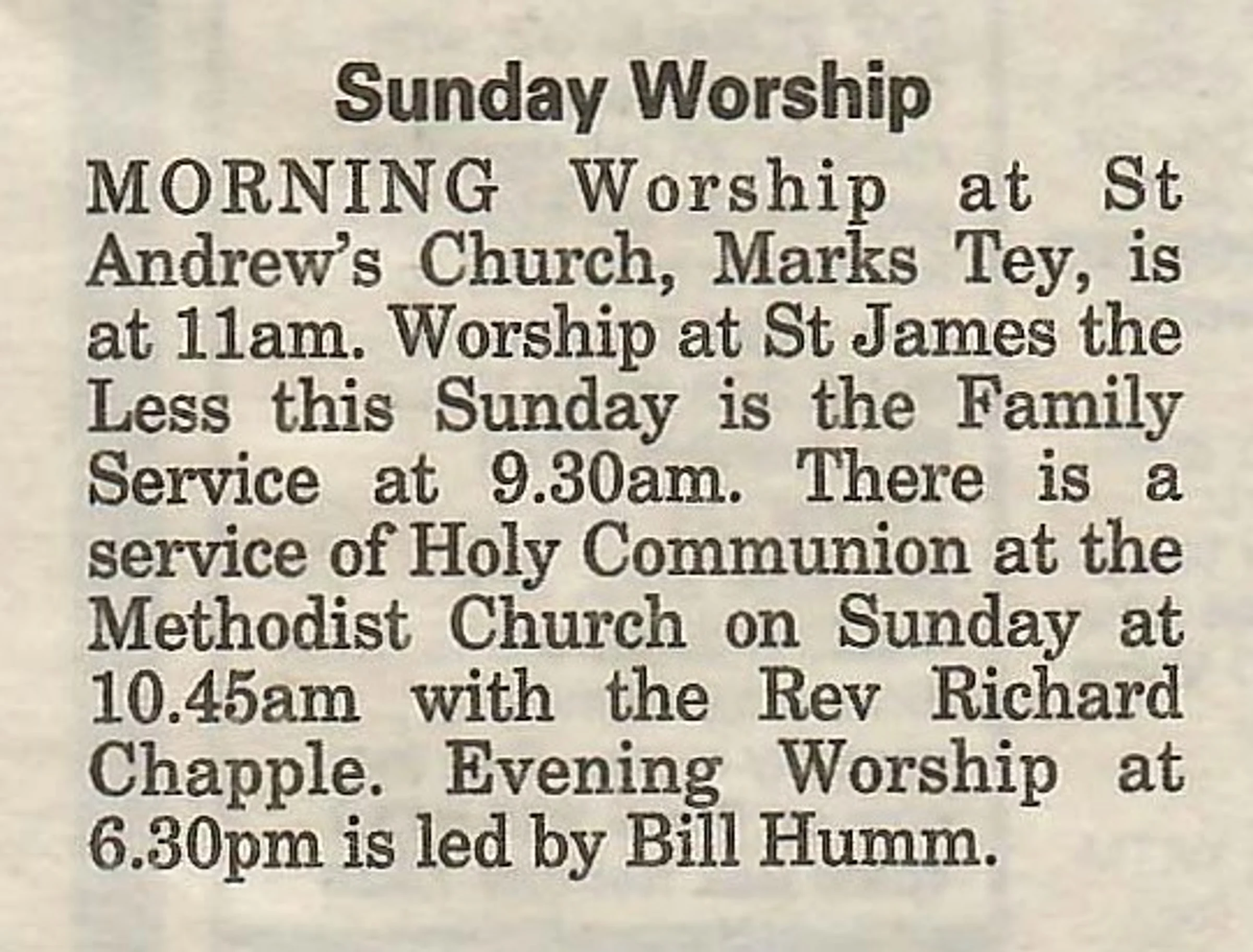 Village newspaper column reporting on church services.