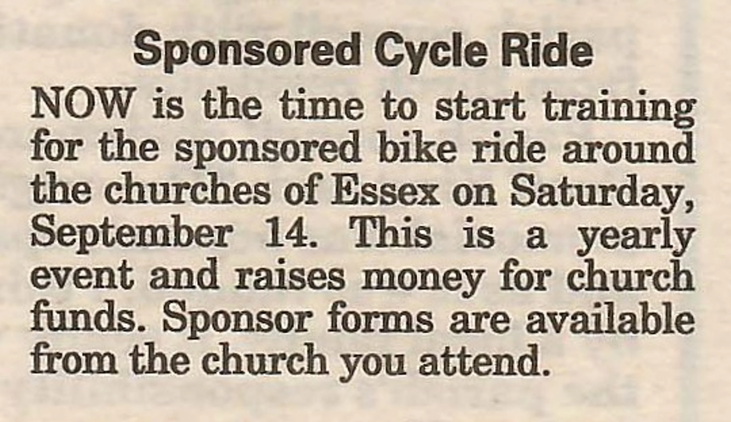Village newspaper column reporting on the church cycle ride.