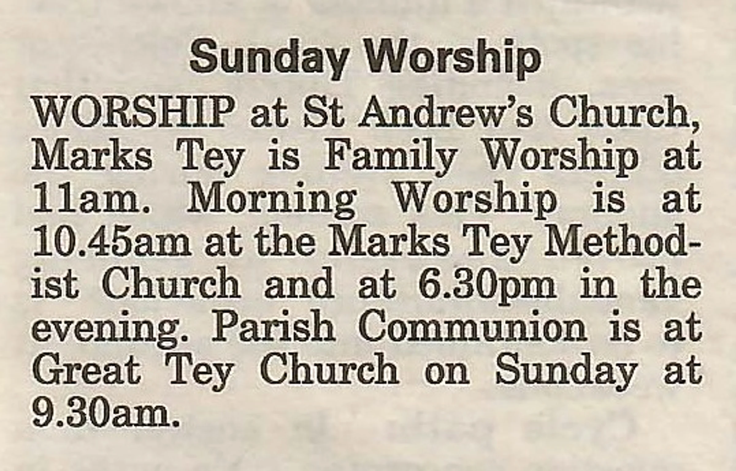 Village newspaper column reporting on church services.