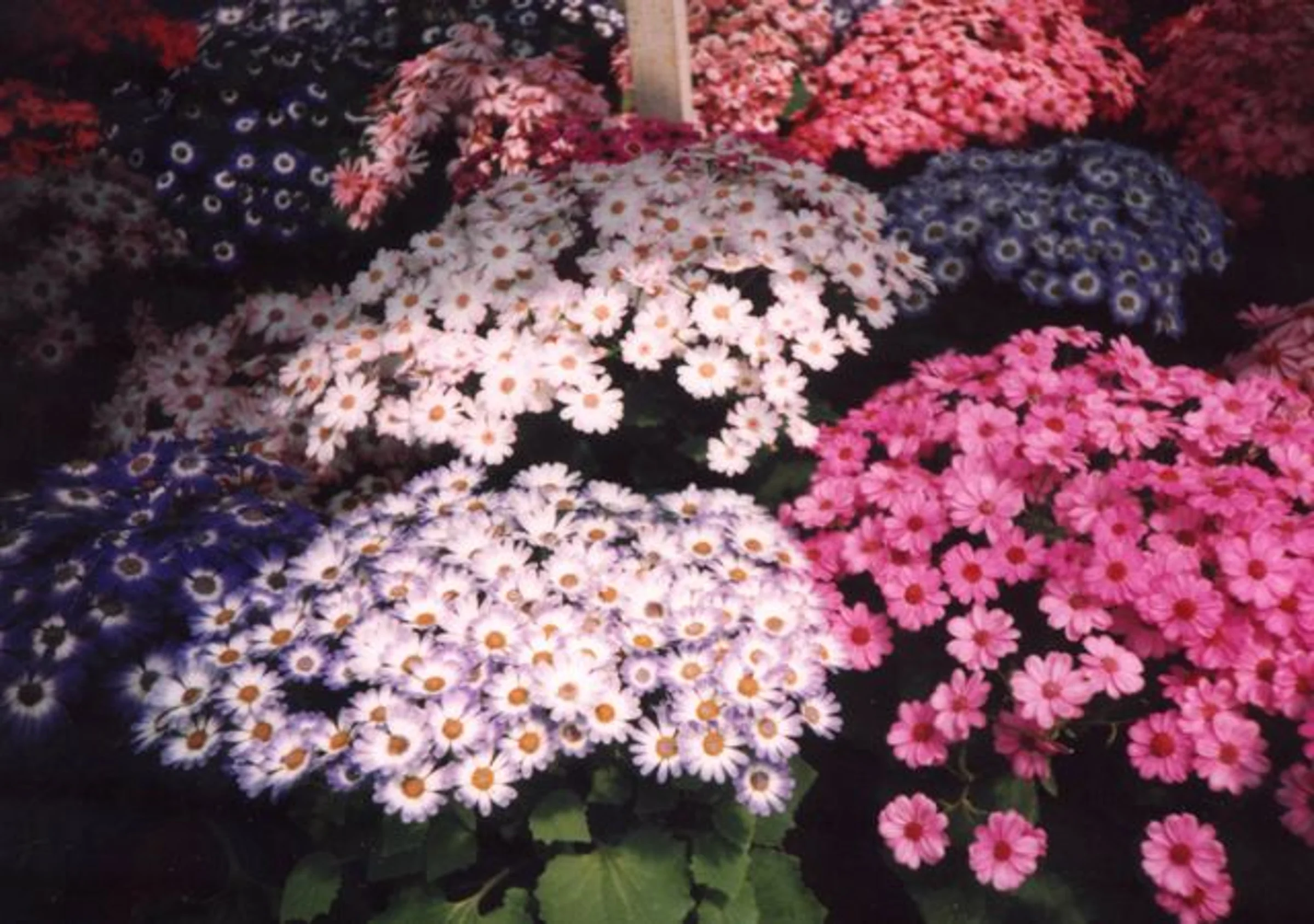 Undated photo of cinerarias in flower in a greenhouse, possibly during a Primrose Festival.