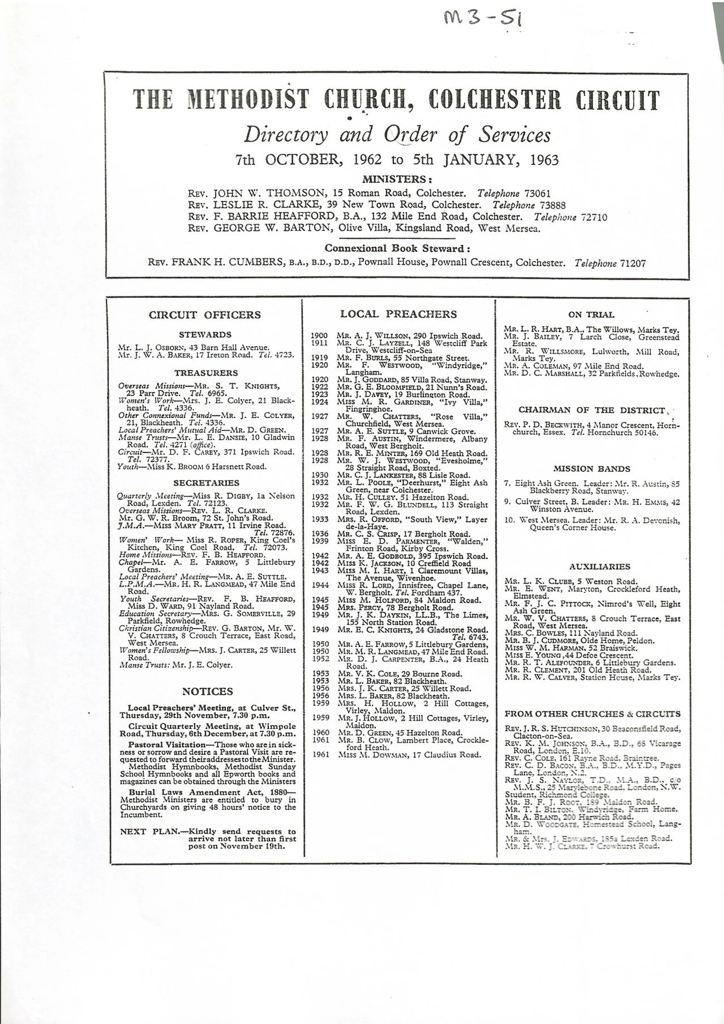 Colchester Circuit Directory, 1962-63