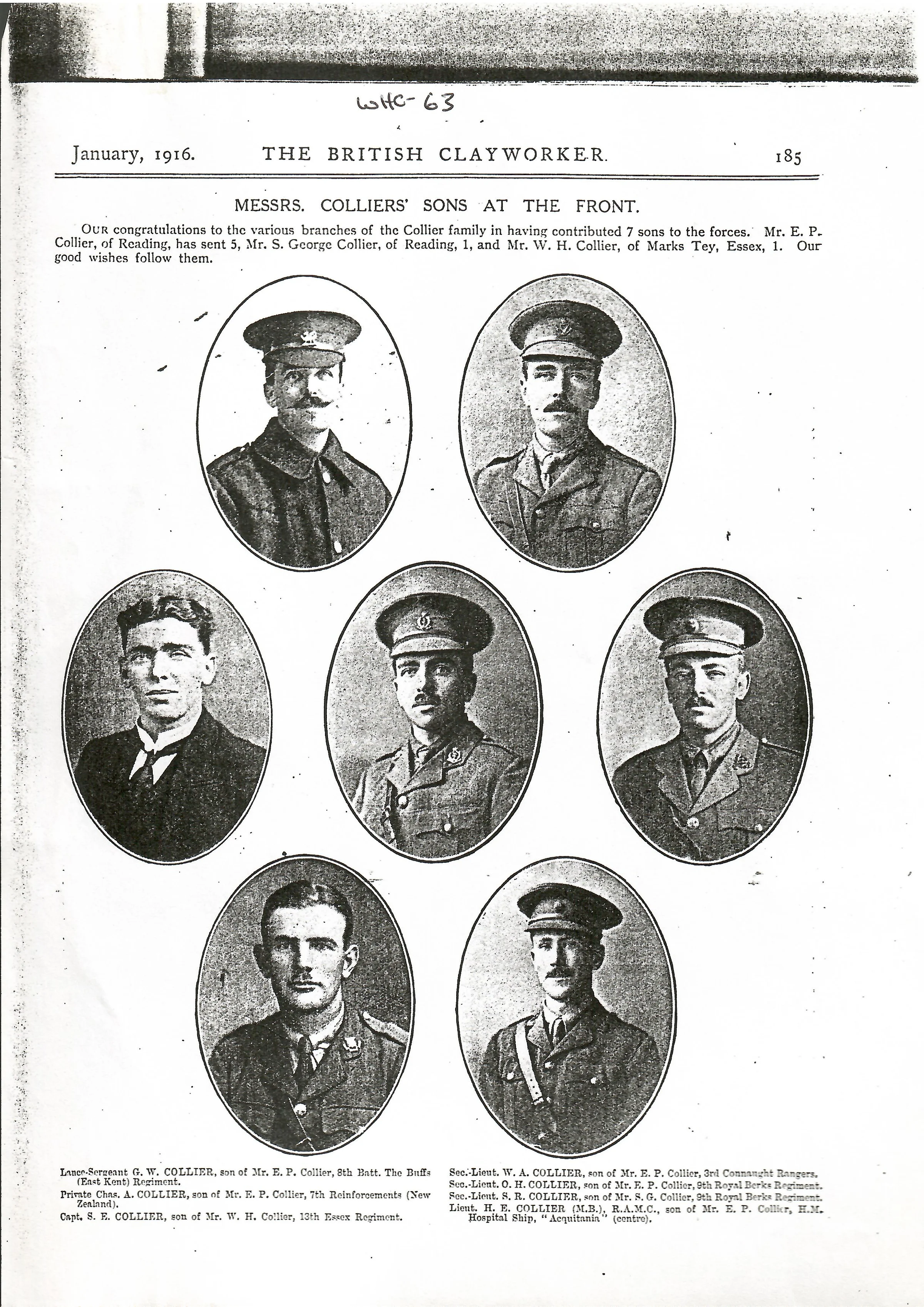A notice of Collier family members serving on the western front.