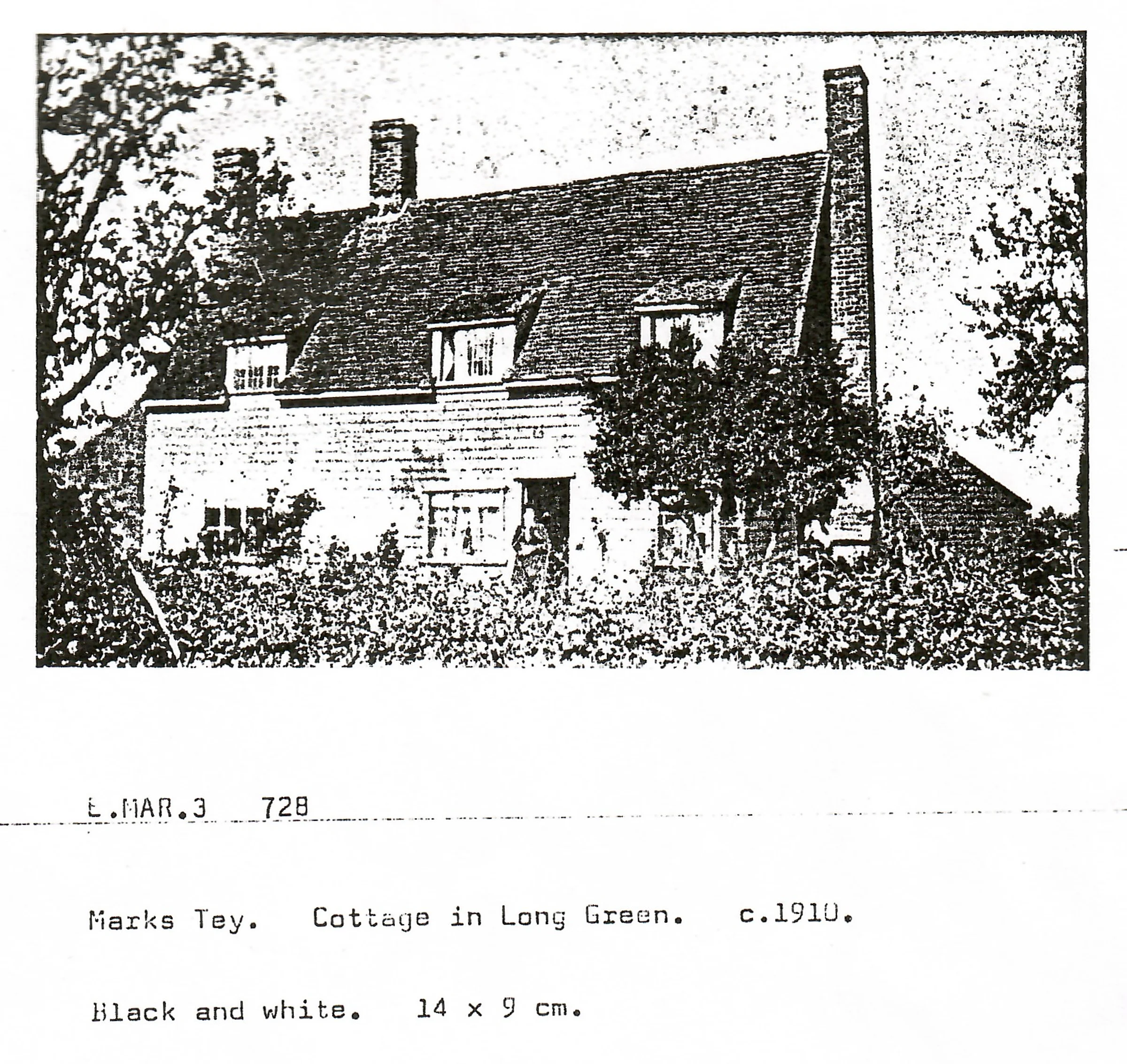 A photocopy of a photo of a weather-boarded cottage at Long Green. Hopefully a better image can be acquired.