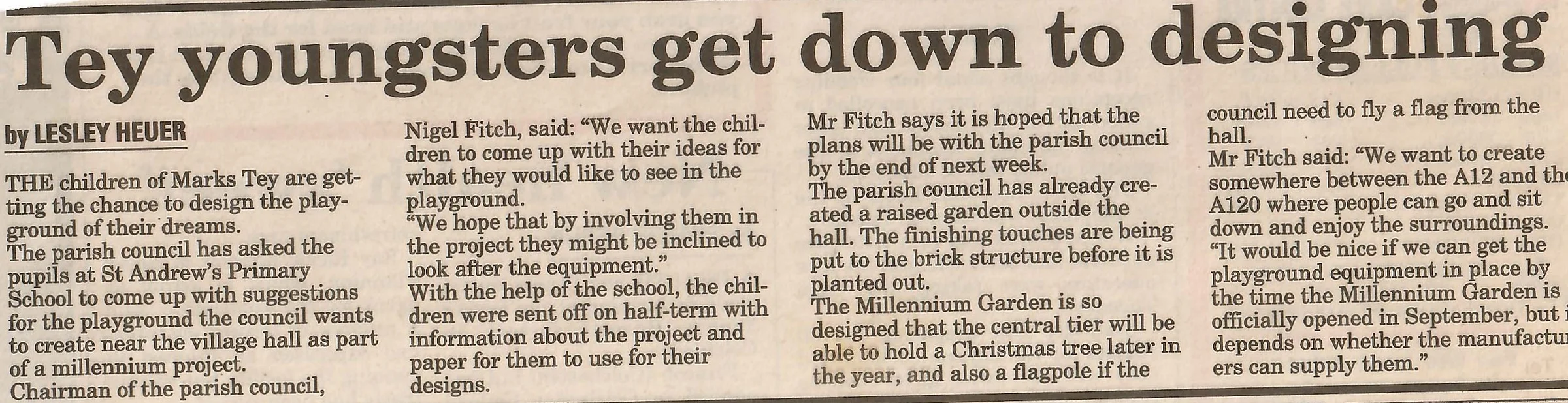 Newspaper article report on the design of a village playground, with children from St Andrew’s Primary School.