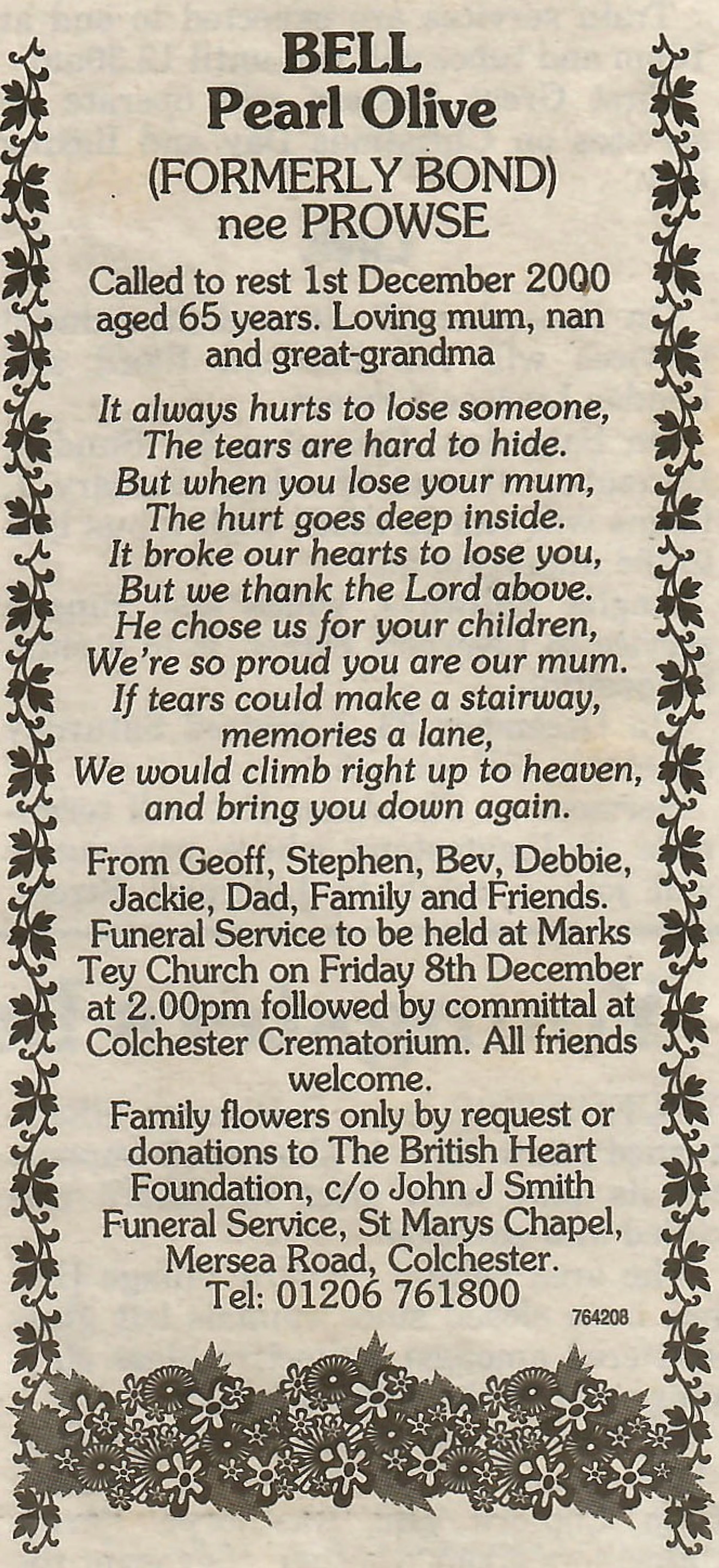 Newspaper death notice.