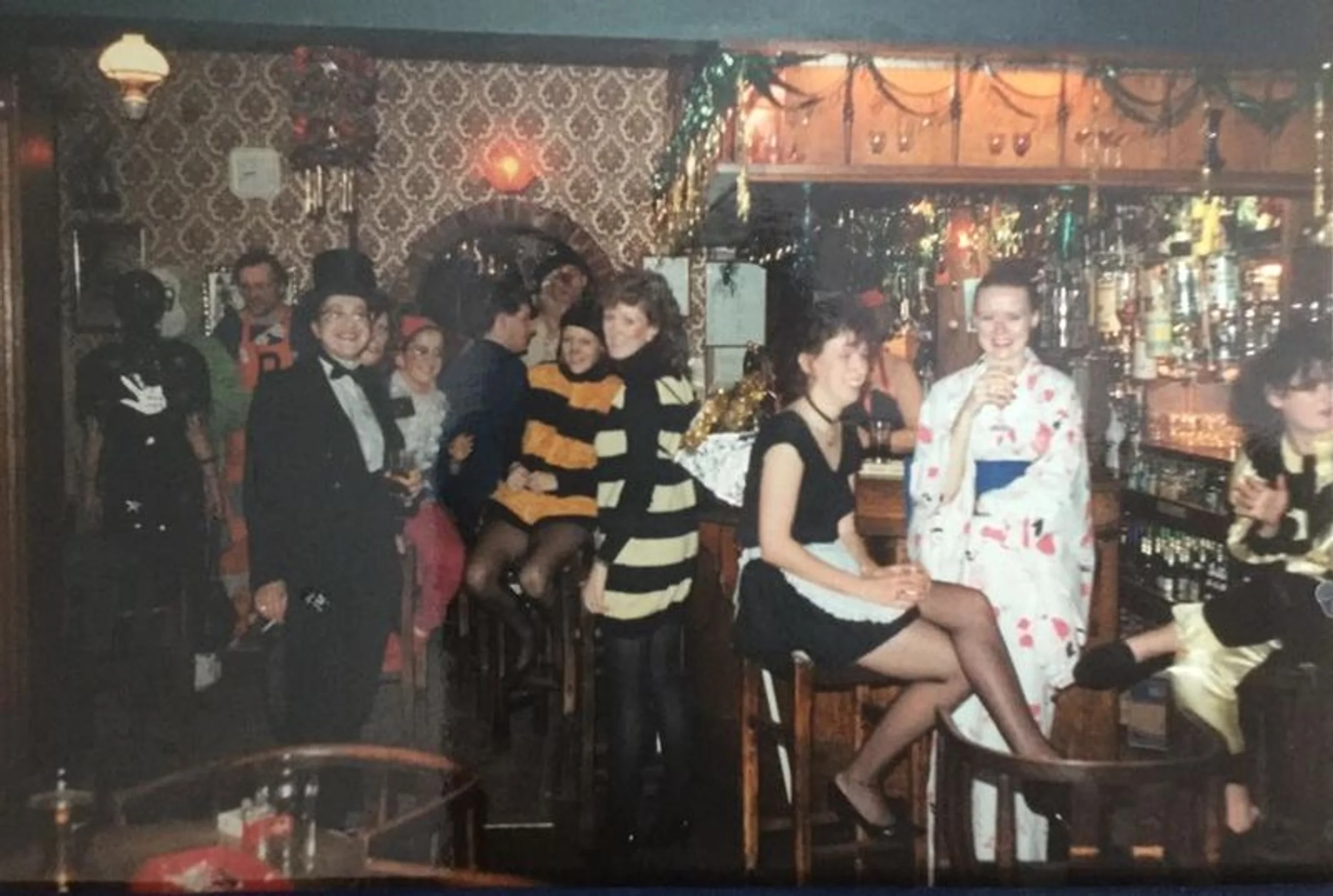 Undated colour photo of a fancy dress party at the pub.