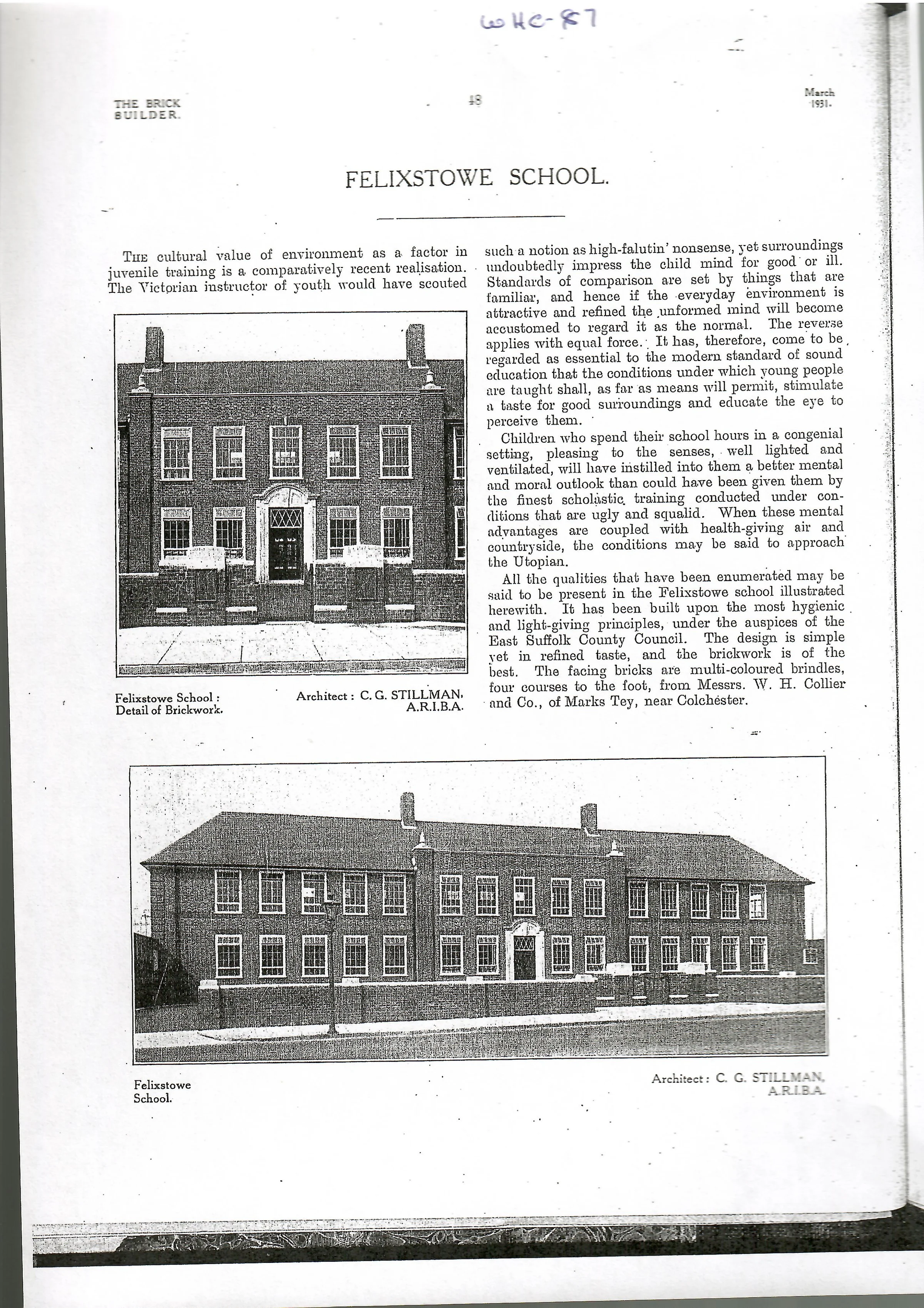 Article describing the new building at Felixstowe School, Suffolk.