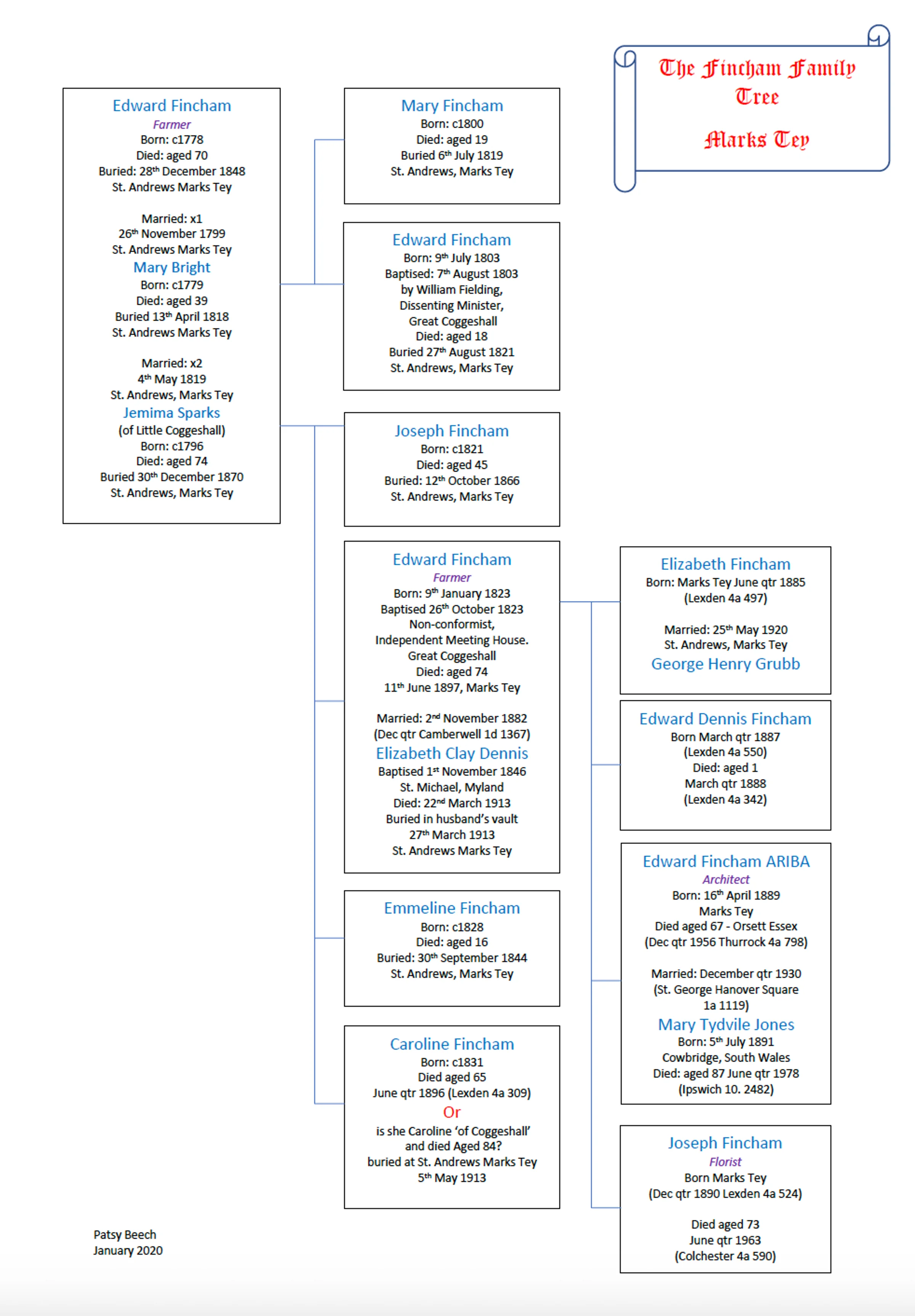 The Fincham Family Tree from c1778 until 1963, beginning with Edward Fincham and his wife, Mary Bright.