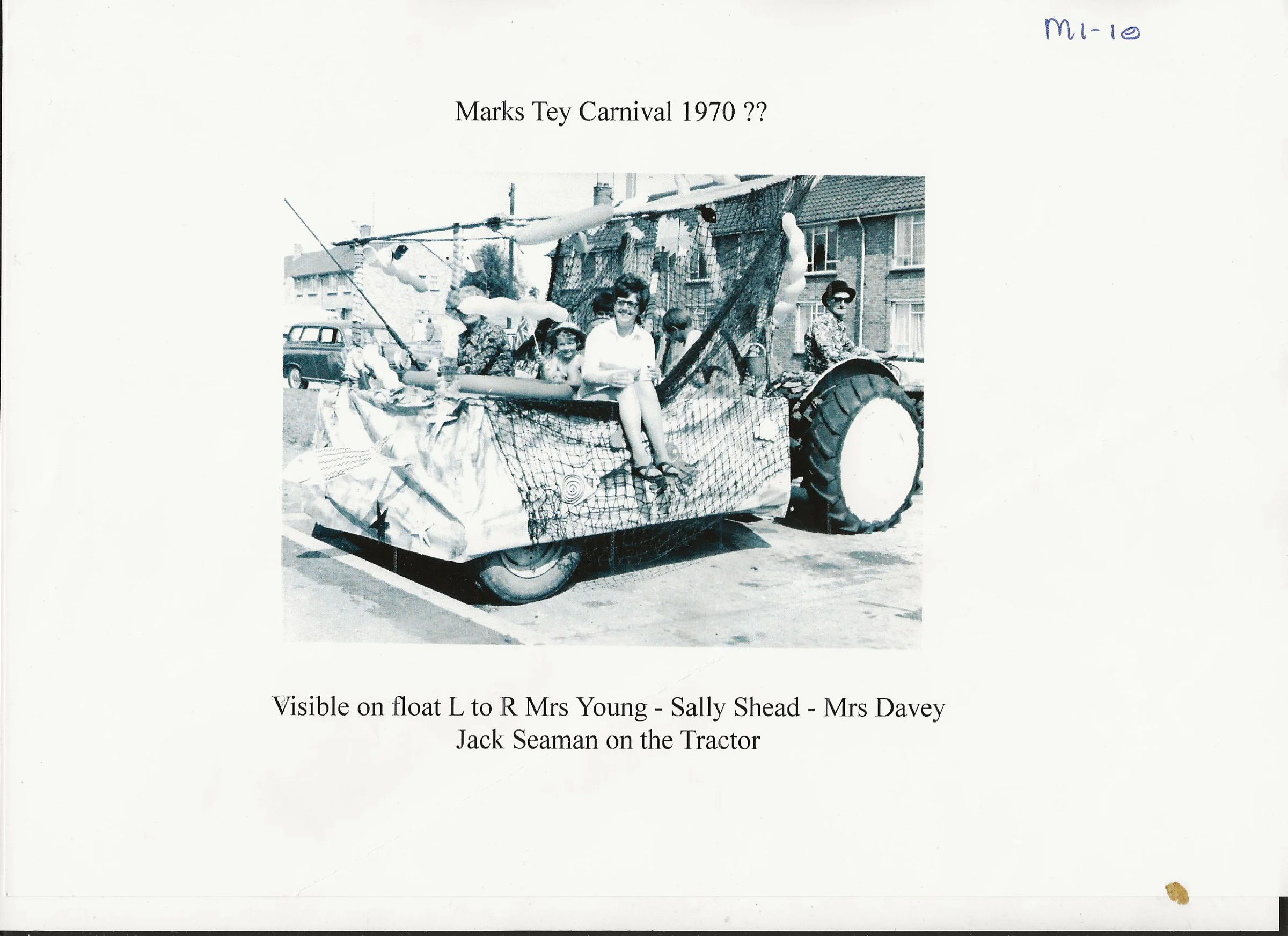 Float at the 1970 Marks Tey Carnival. left to right: Mrs Young, Sally Shead, Mrs Davey, Jack Seaman (on tractor).