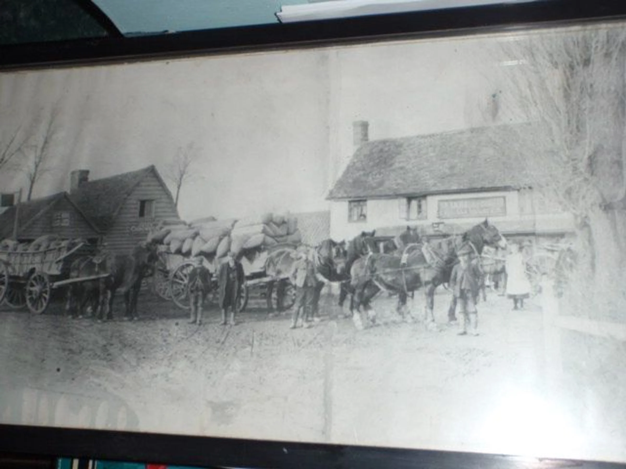 A framed photograph of The Red Lion labelled in the top LH corner as taken January 1908.