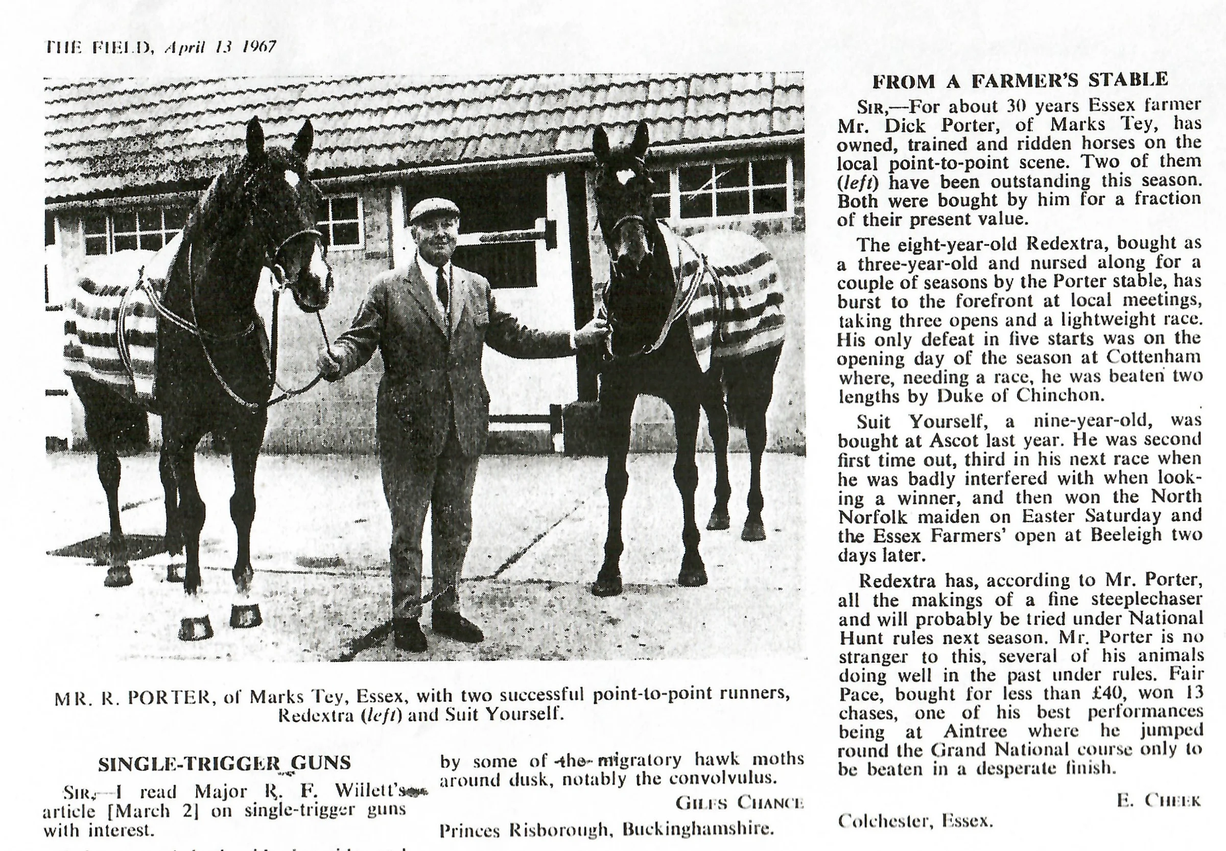 'From a farmer's stable' - Dick Porter in The Field, 1967