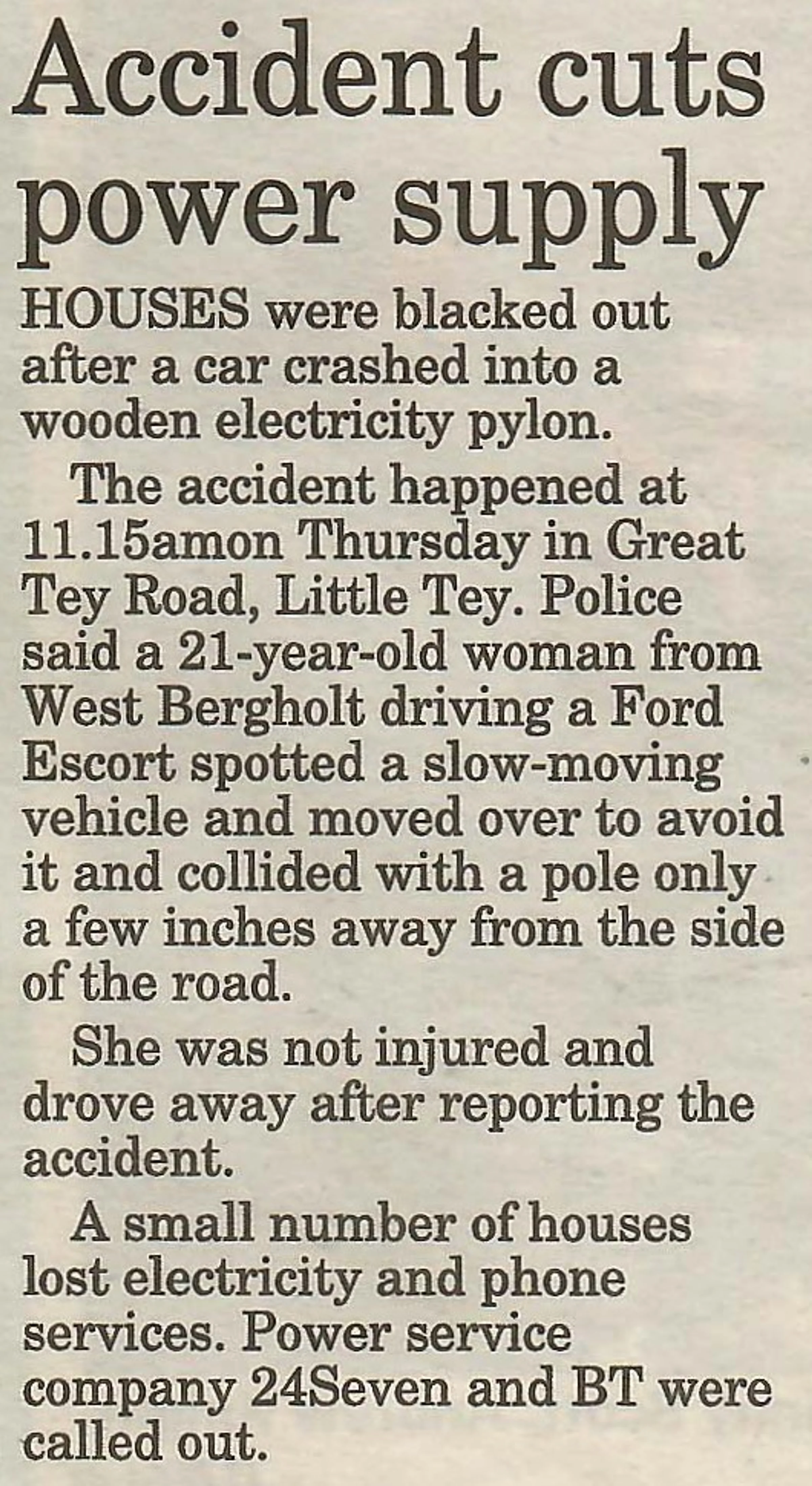 Great Tey road news 2001 power cut
