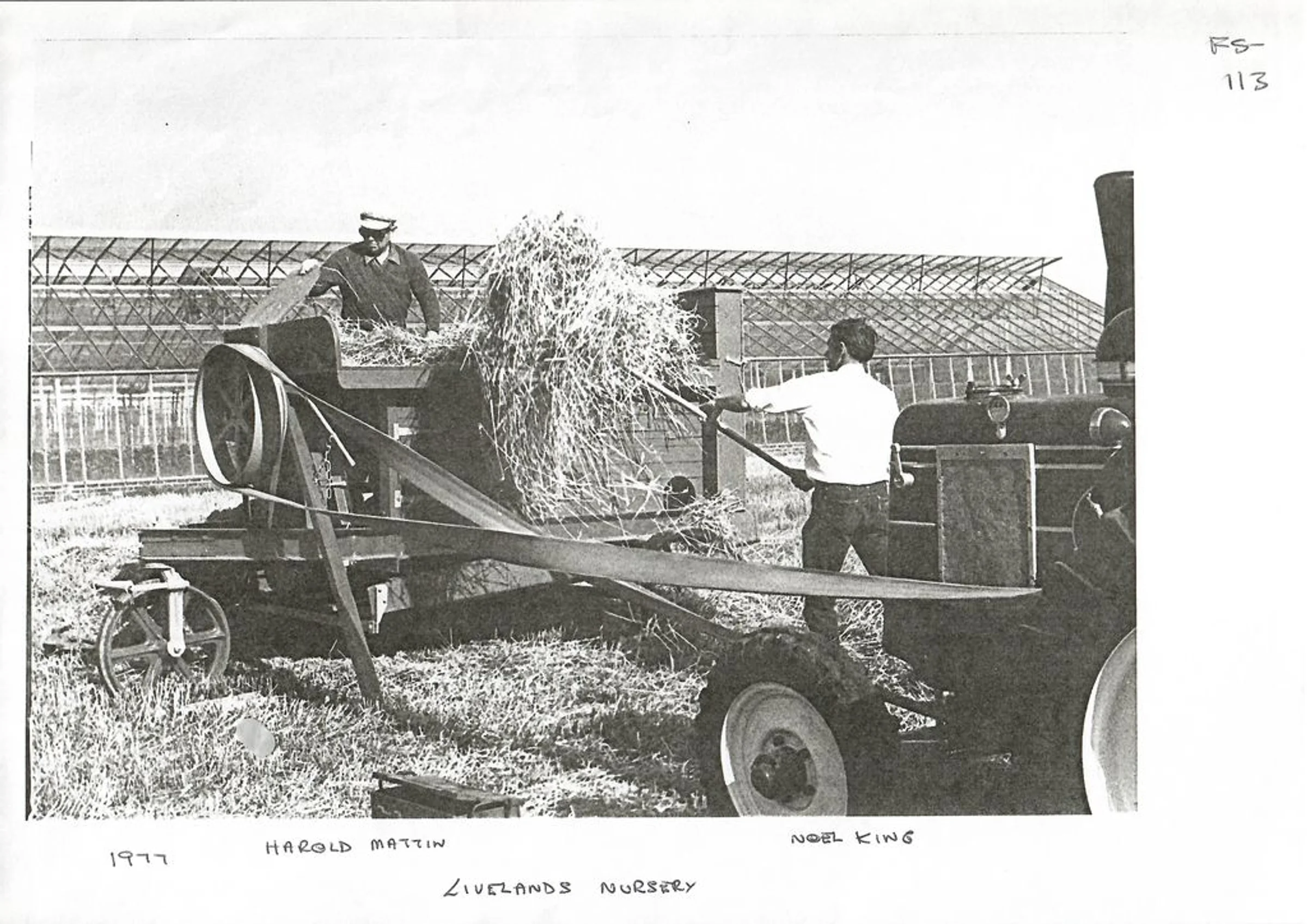 A photo dated 1977 showing Harold Mattin working with Noel King at Livelands Nursery on London Road.