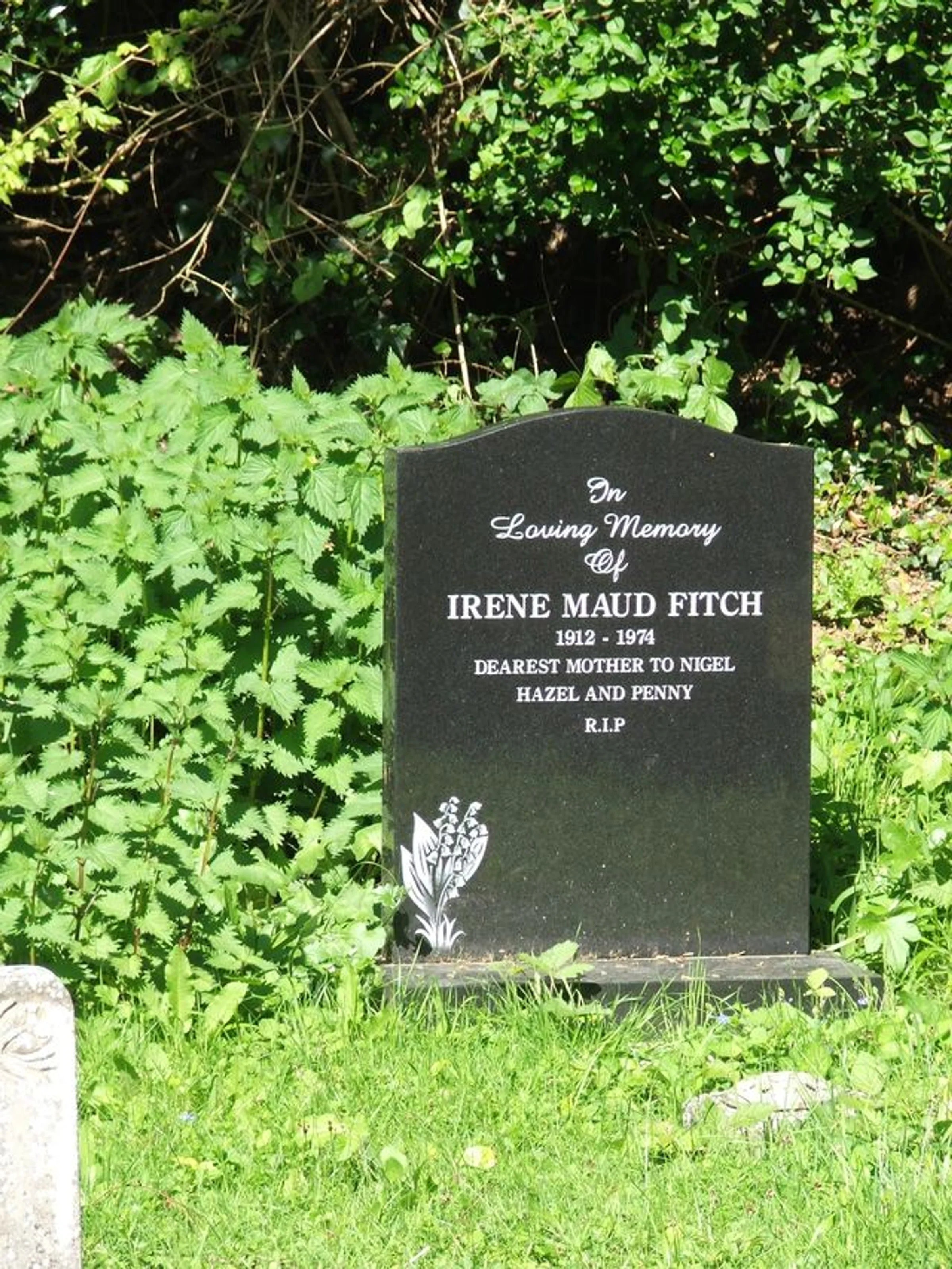 Headstone of Irene Maud Fitch (1912-1974), mother of Nigel, Hazel and Penny.