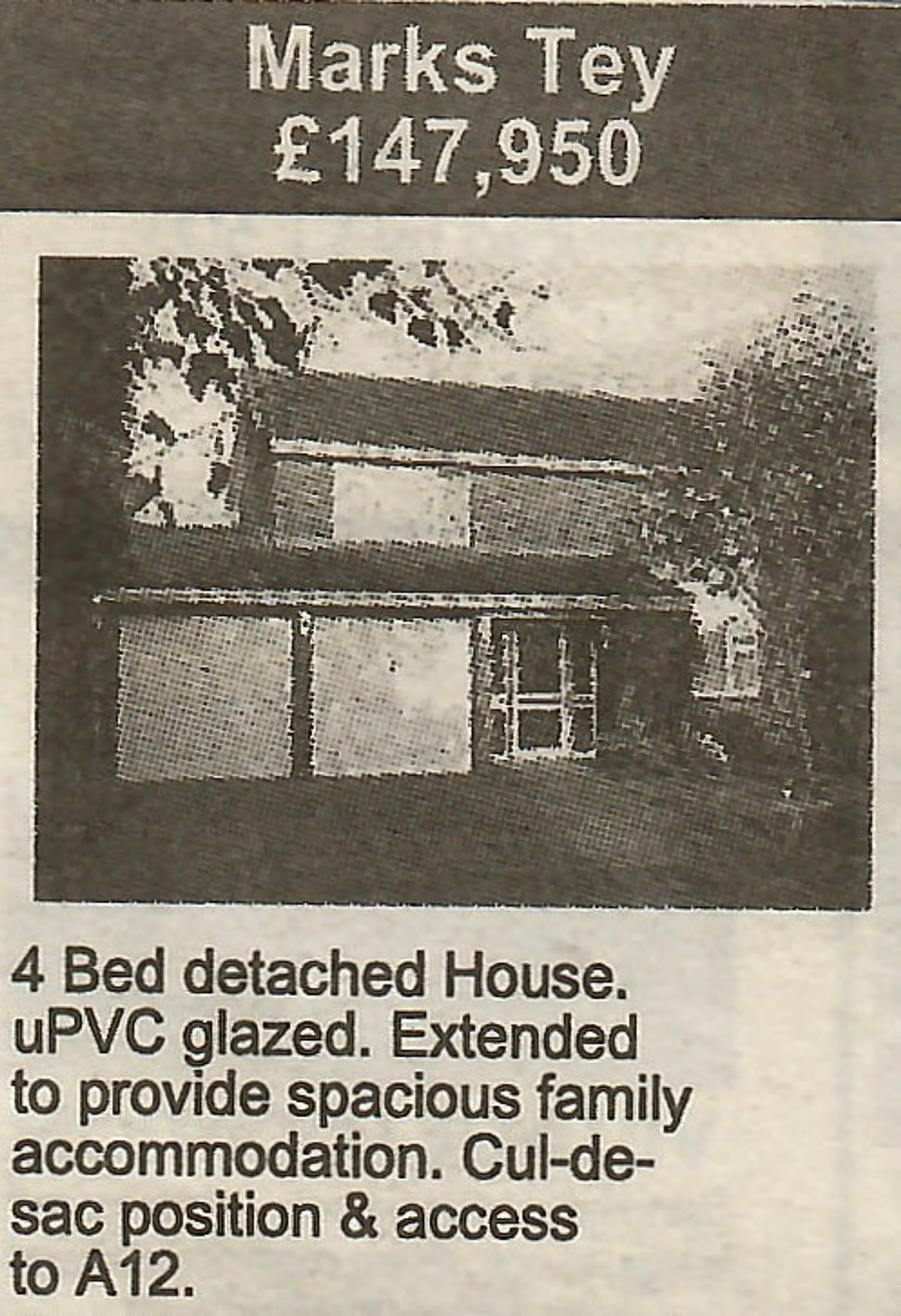 Newspaper advertisement for a house.