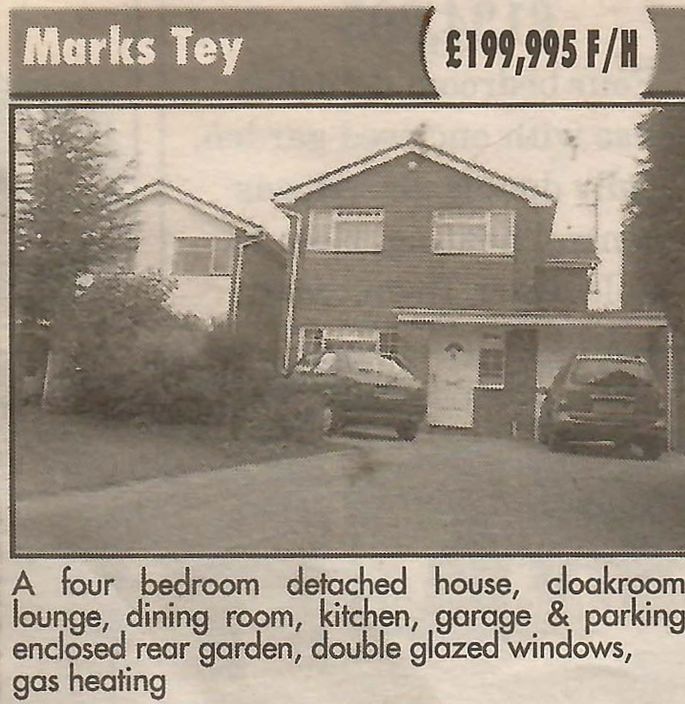 Newspaper advertisement for a house.
