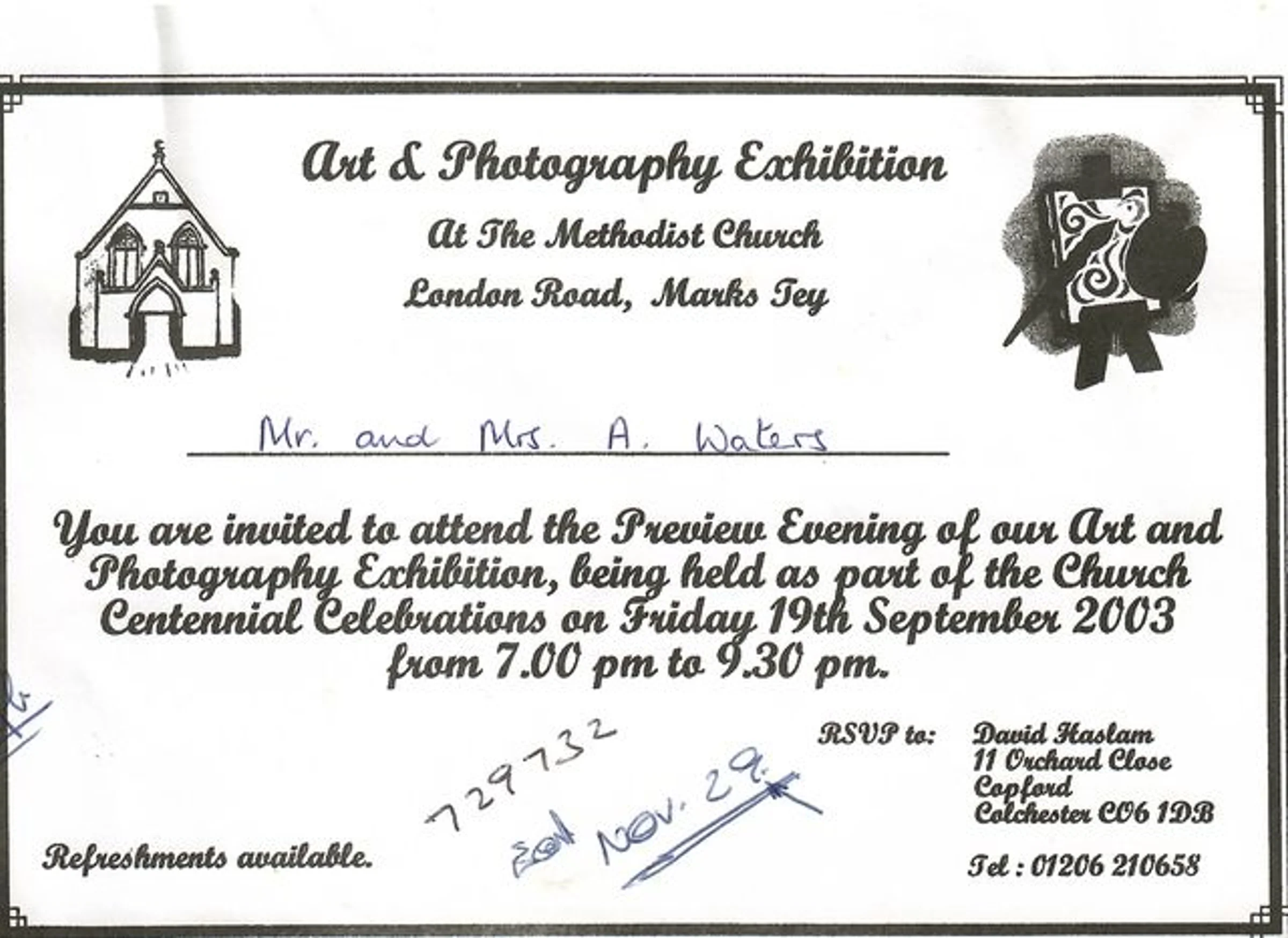 An invitation to the Preview Evening of the Art Exhibition on 19 September 2003.