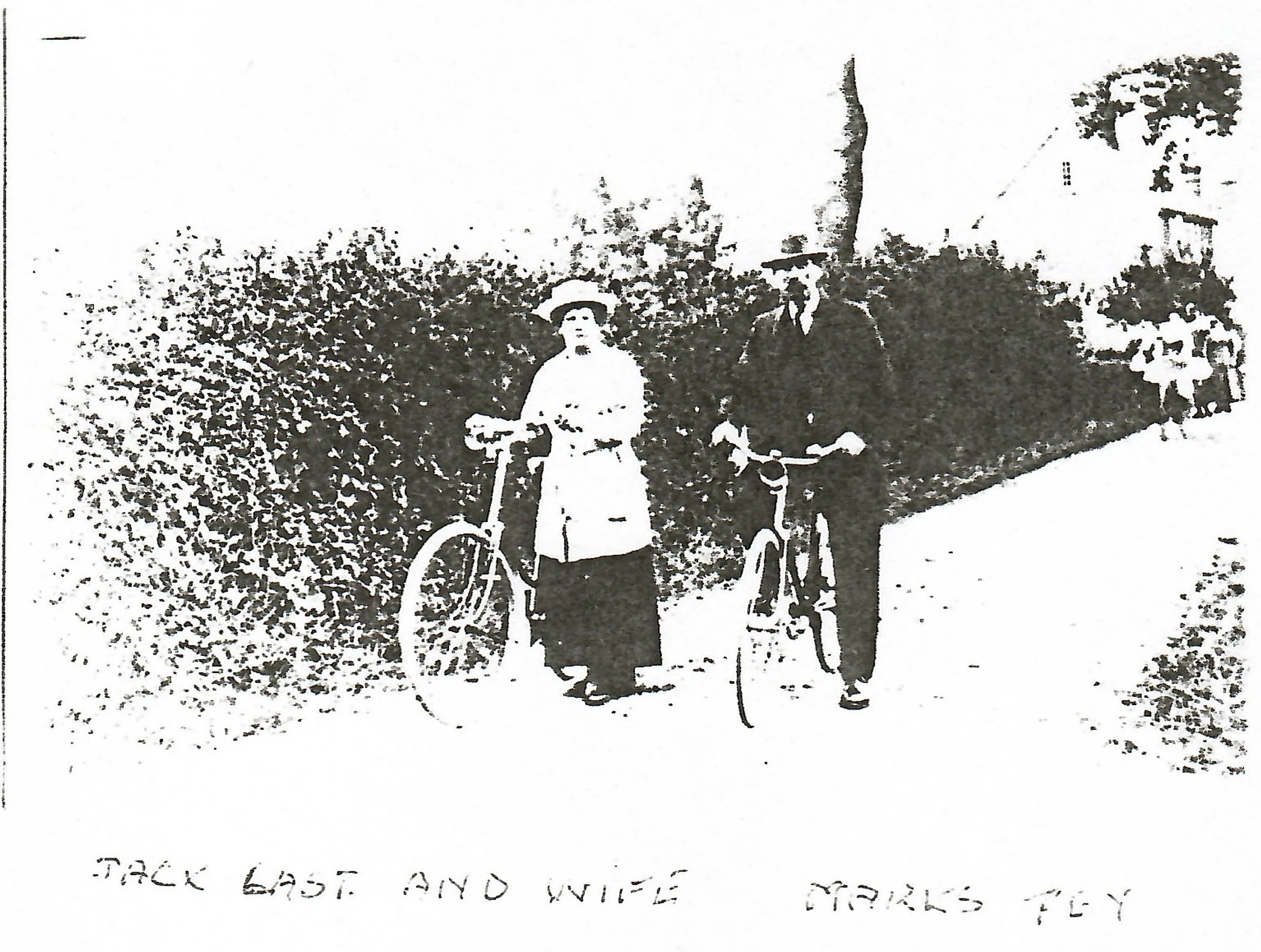 This shows Jack last and his wife with their bicycles but the exact place or date is not supplied.