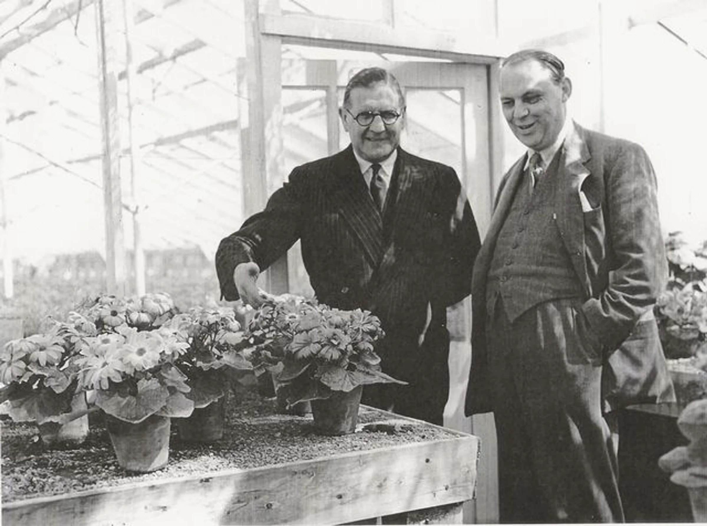 A photo reprinted in the Nurseryman and Seedsman in May 1956 when John Fife, director of Dobbies was selling the business to David Fenwick of Bypass Nurseries.