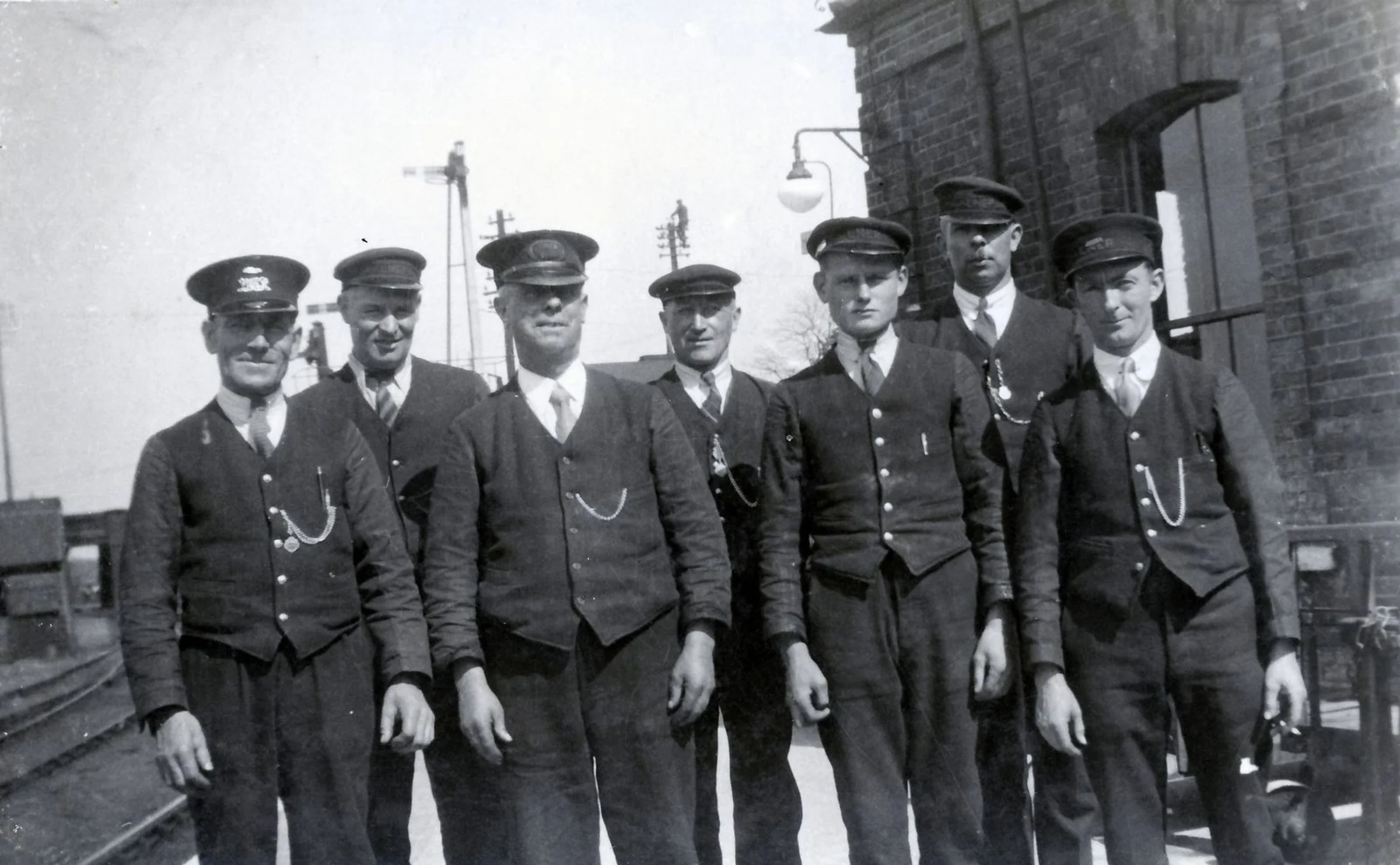 A photo of railway staff at Marks Tey station.