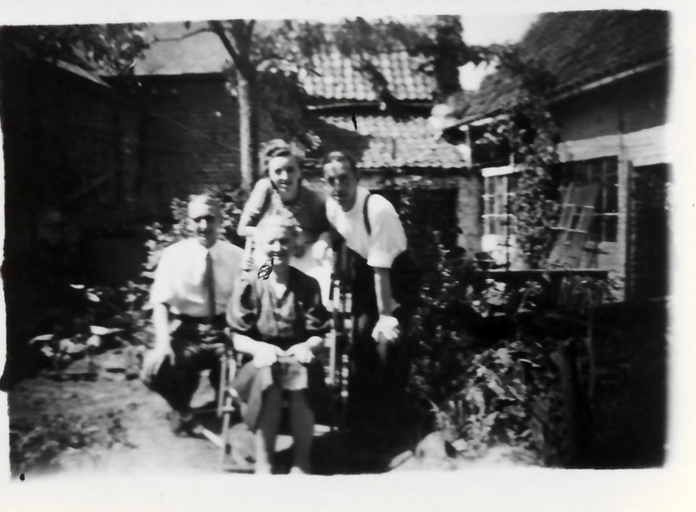 A family group in a back garden.