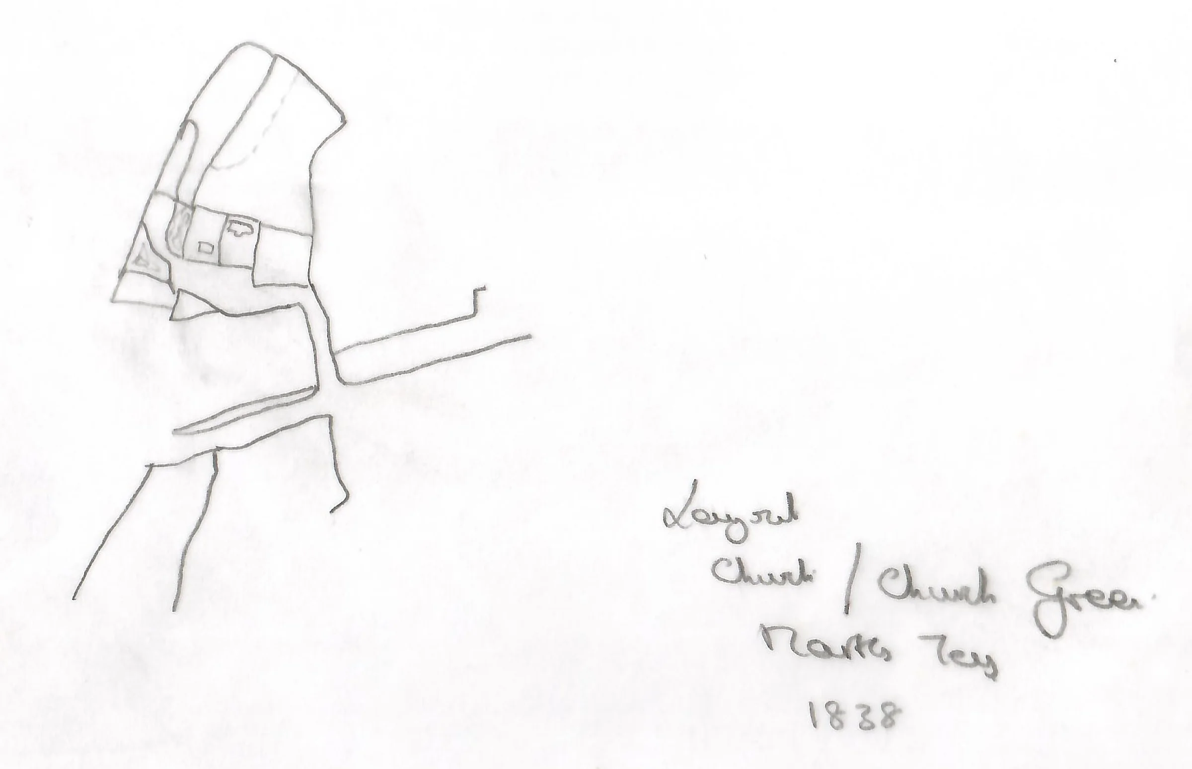 Layout of Church Lane and Church Green in 1838