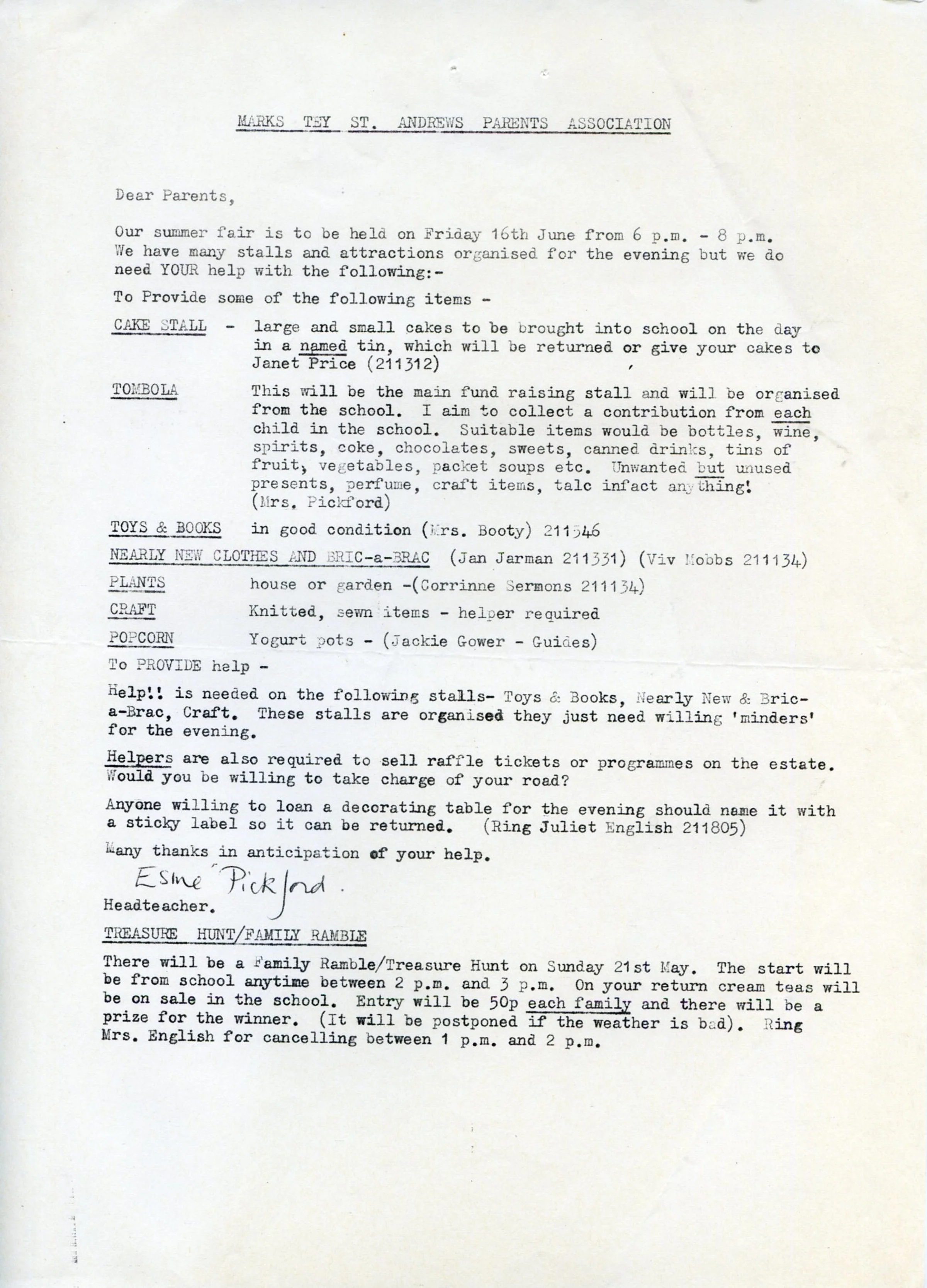 The letter to the parents is regarding a summer fair which was organized in May1989.