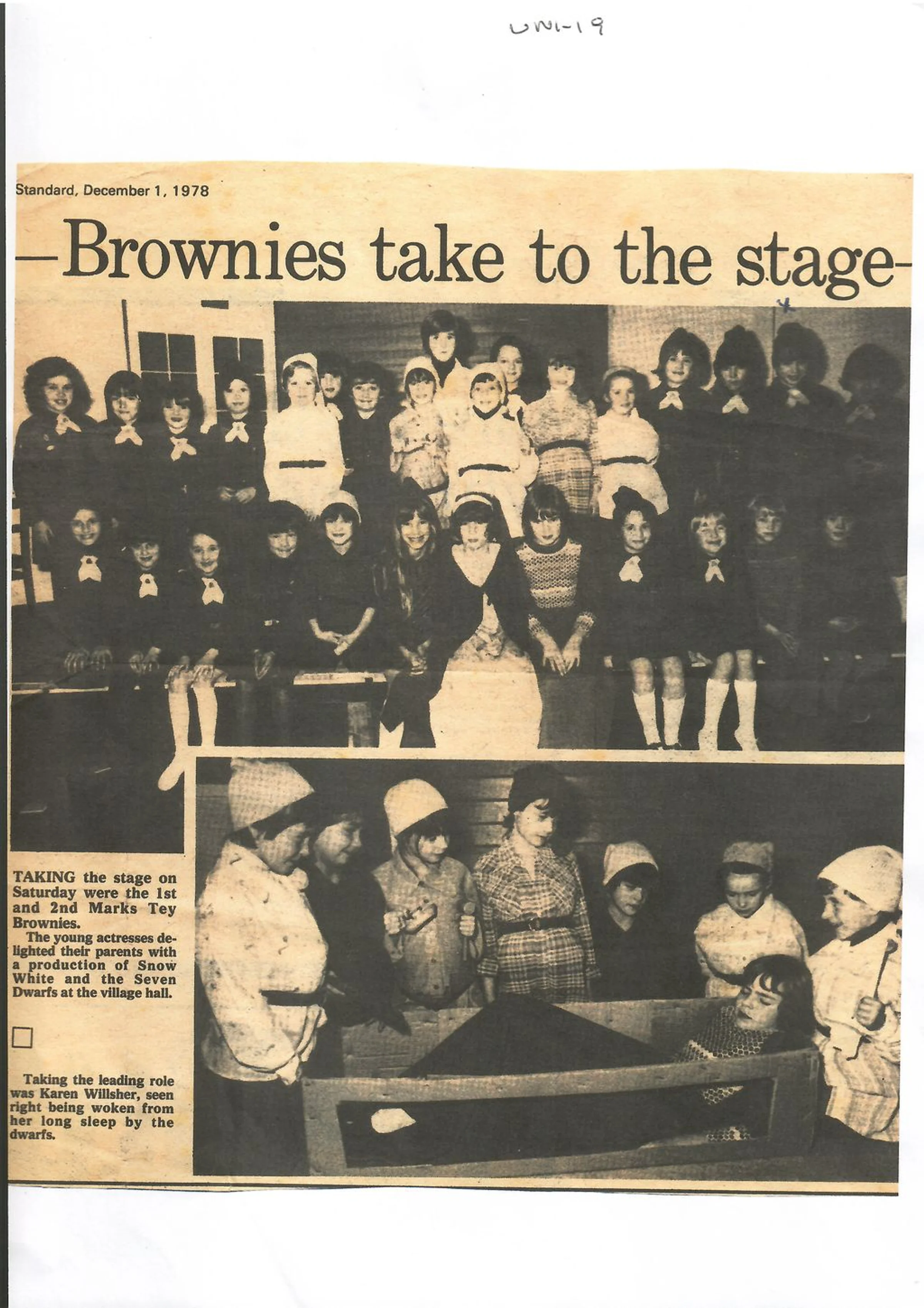 Marks Tey Brownies production of Snow White, newspaper cutting, 1978