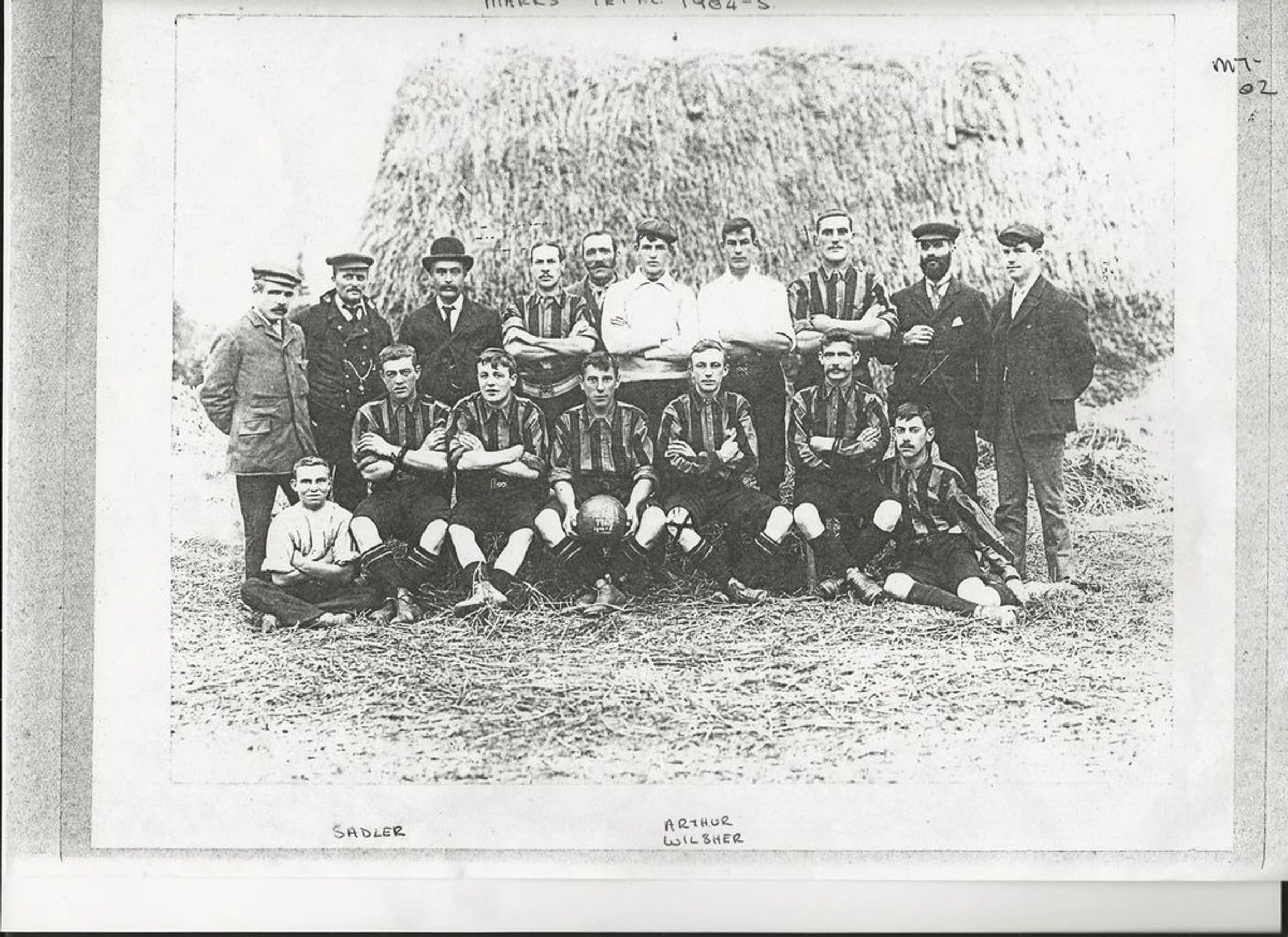 Sadler and Arthur Wilsher have been labelled. Arthur Wilsher was born in 1885. By 1911 he was a signalman who had moved away from the village, so a date of the photo as 1904-05 seems reasonable.