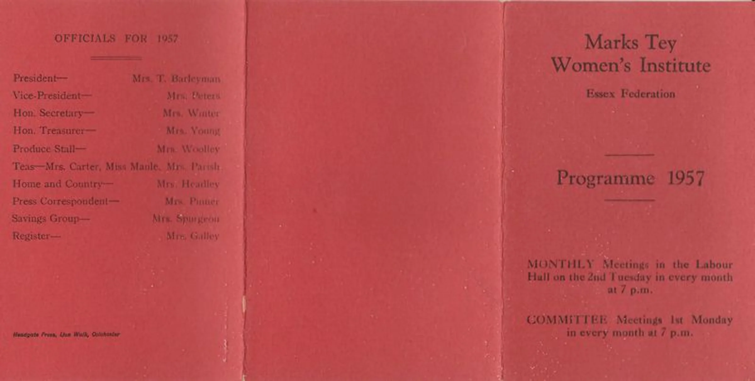 The card gives the subject of the events at the monthly meetings in the Labour Hall, who is on the tea rota and a list of officials for that year.