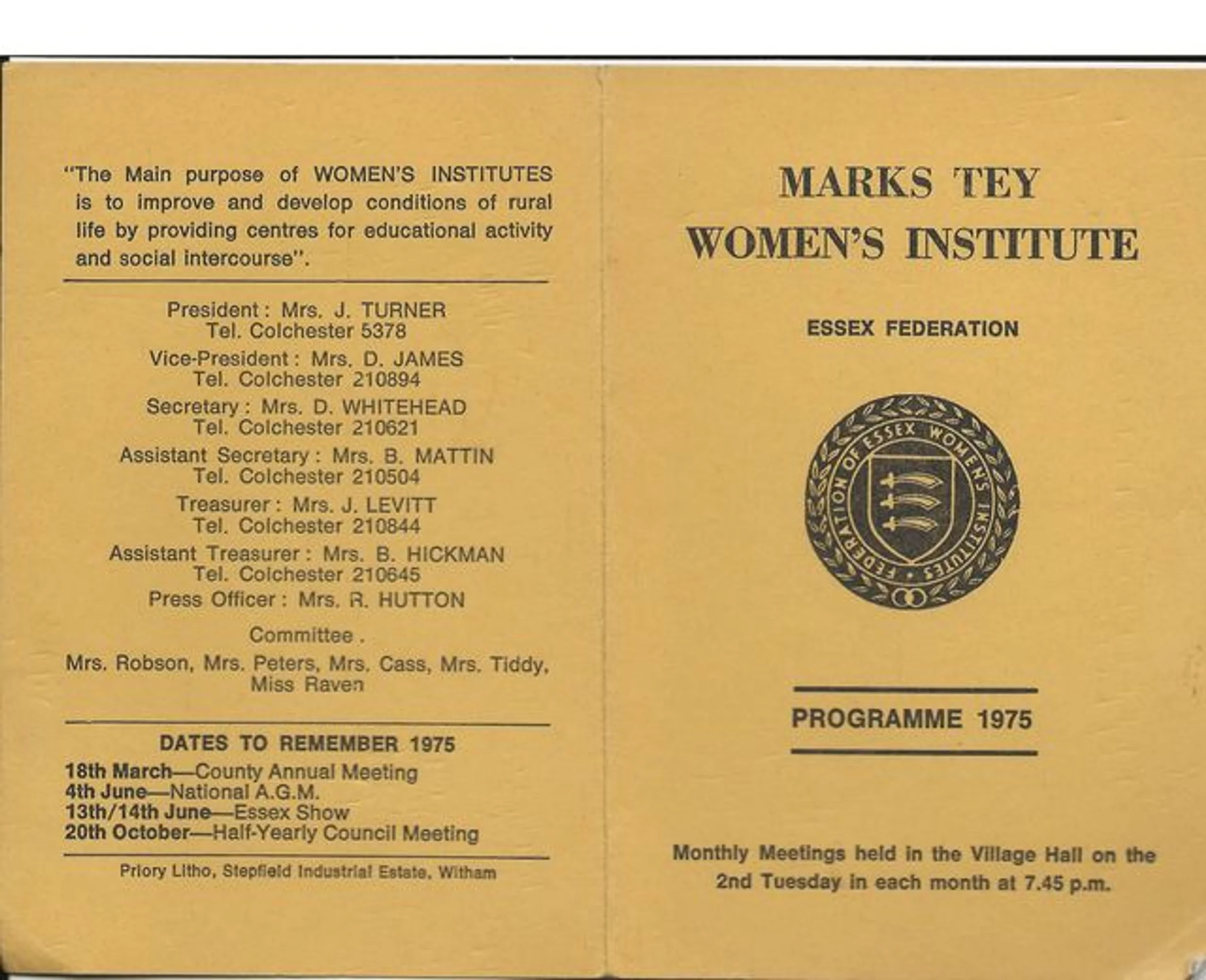 Marks Tey WI, Programme for 1975