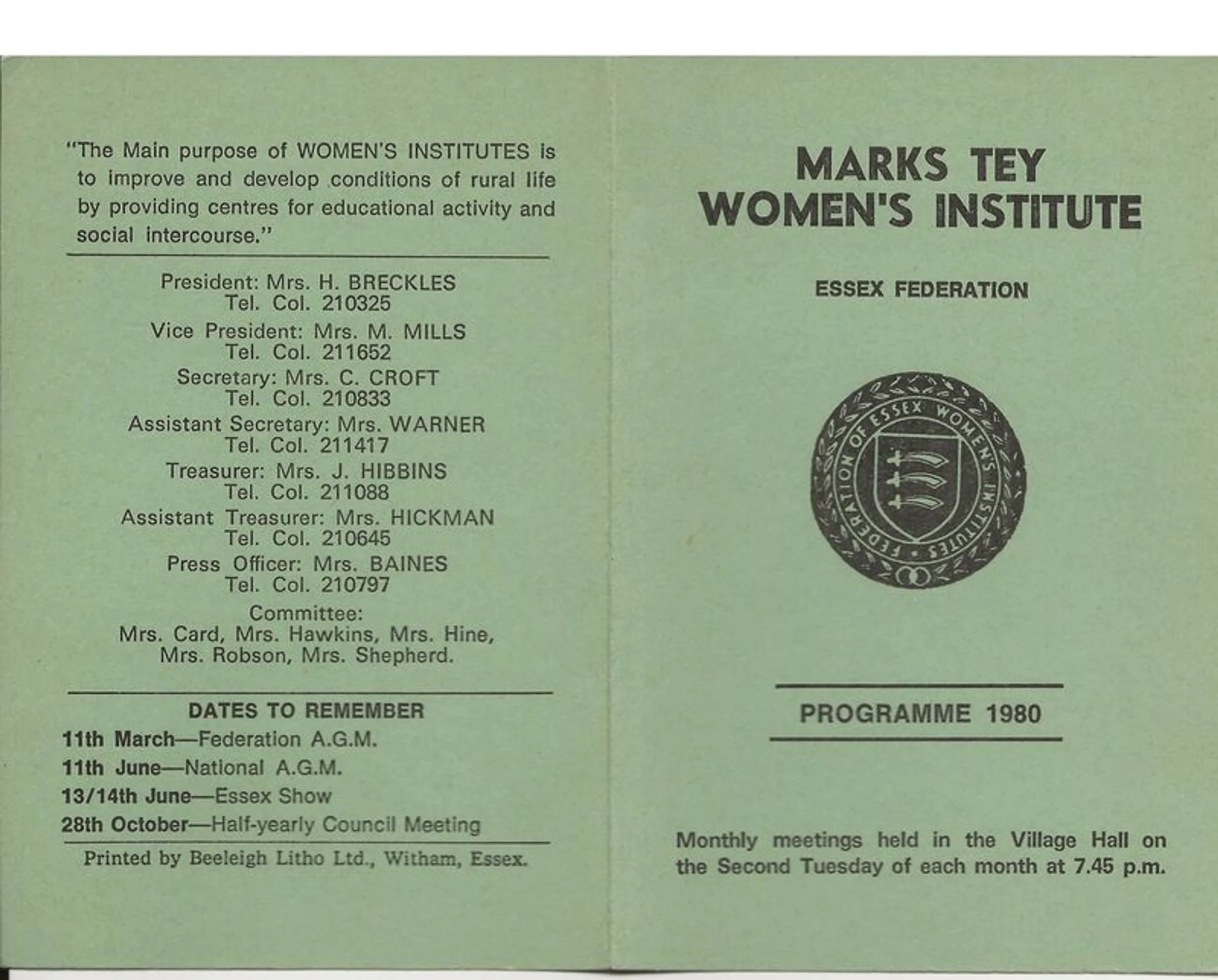 Marks Tey WI, Programme for 1980