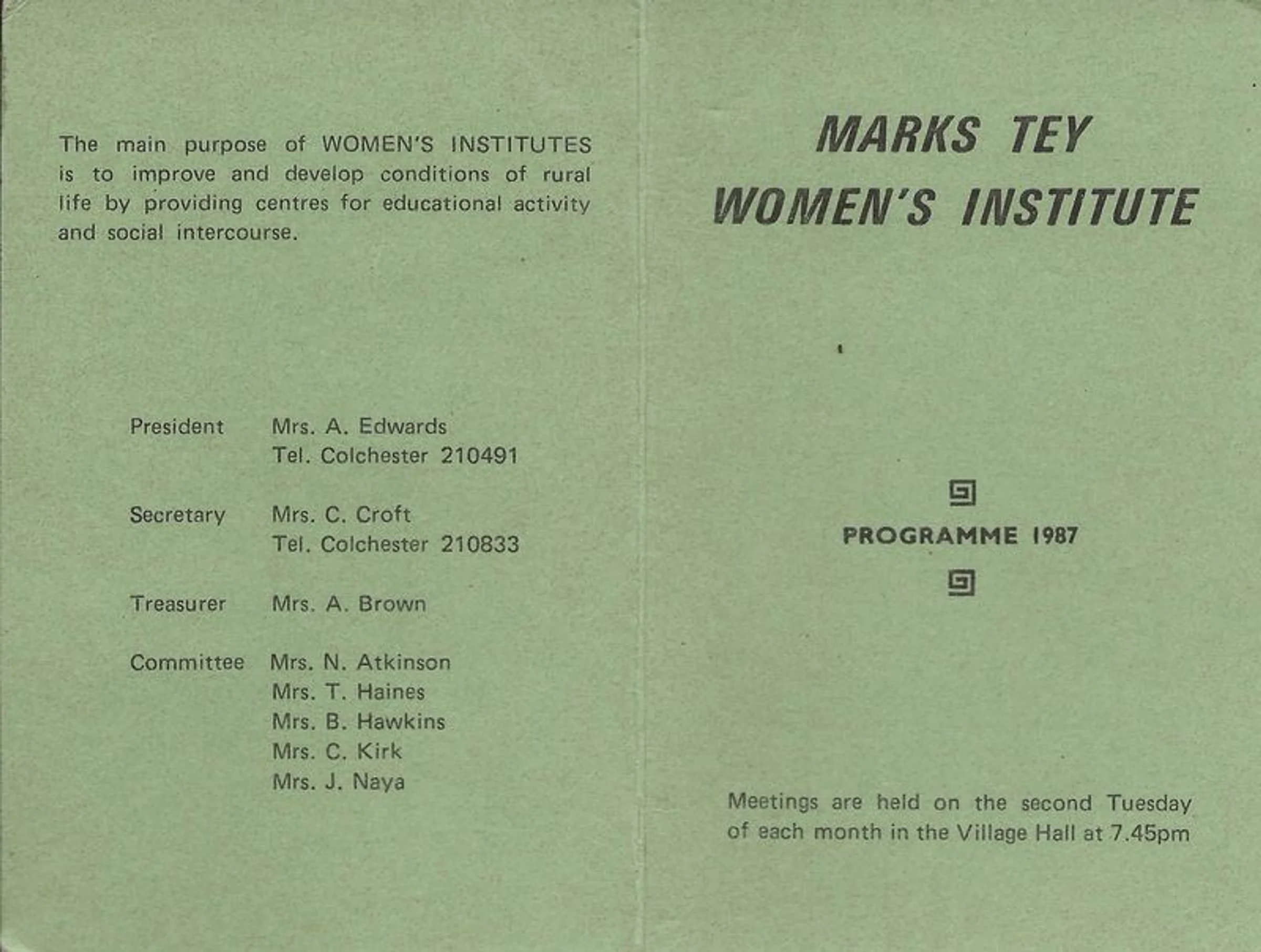 Marks Tey WI, Programme for 1987